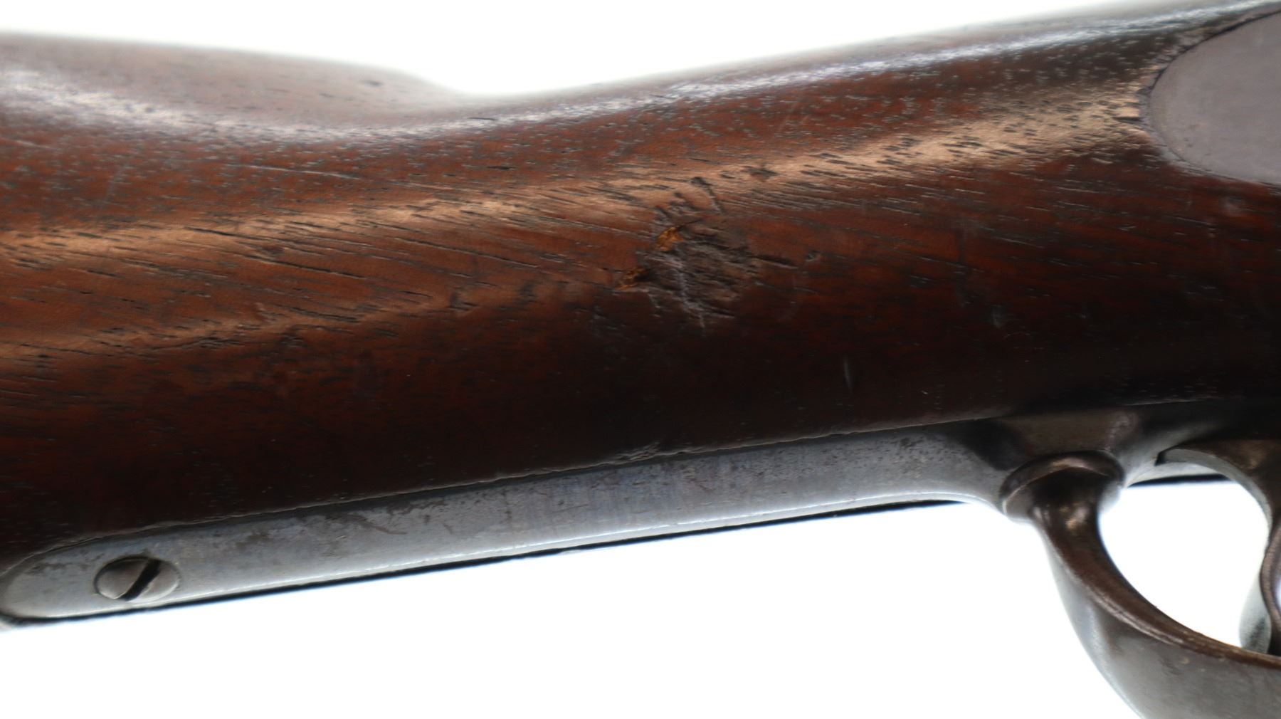 Wear: Metal finish shows some light rust speckles, scratches, handling marks and wear. Stock shows some marks, scratches and wear.