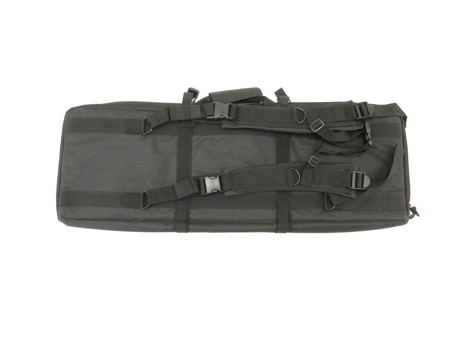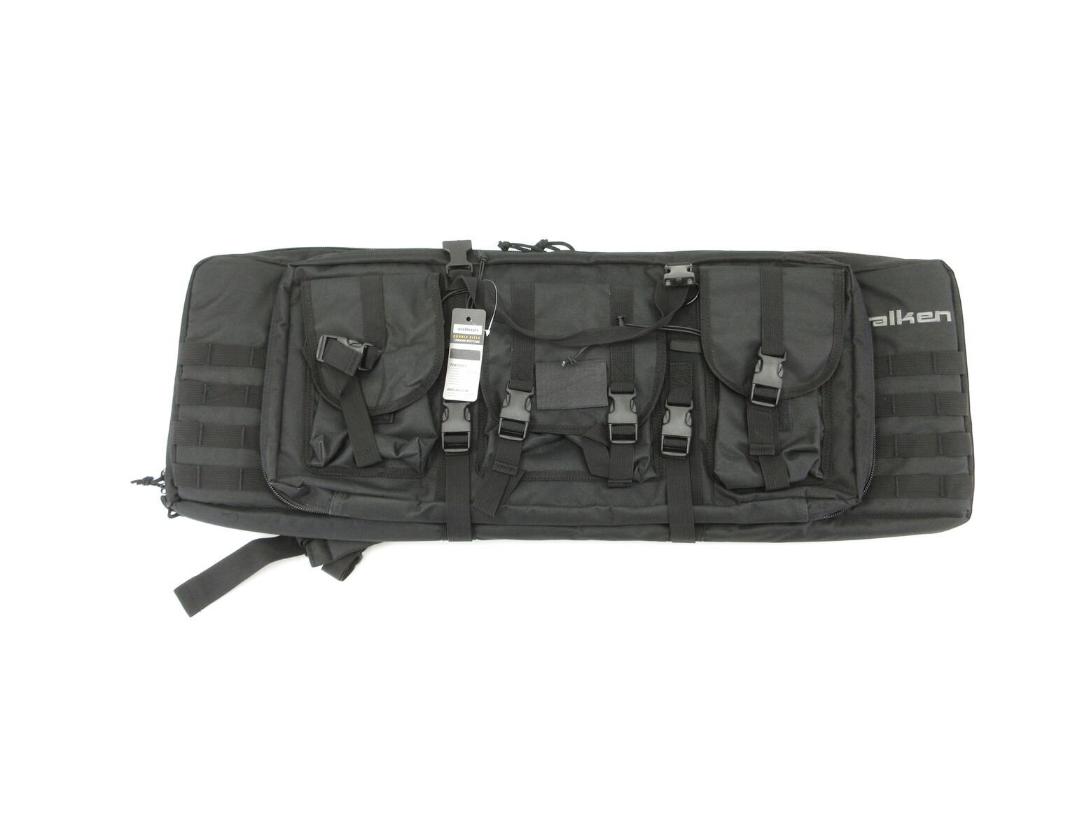VALKEN SOFT PADDED DOUBLE RIFLE CASE LOT. LOT INCLUDES; (1) BLACK SOFT PADDED GUN CASE, ZIPPERED, CARRY HANDLES, BACKPACK STRAPS, FOUR EXTERNAL POCKETS, INTERNAL SECURING STRAPS, LOCKABLE ZIPPERS, APPROX. OAL 36", NOS, SEE PHOTOS.