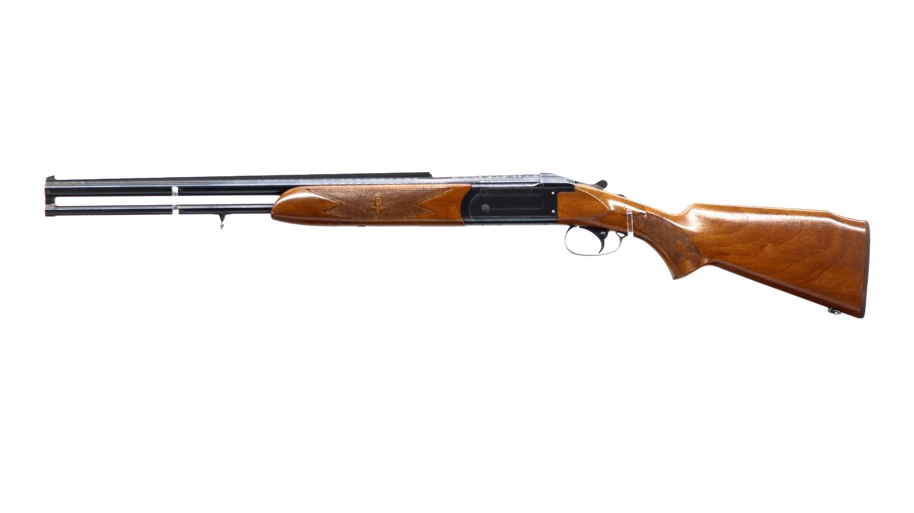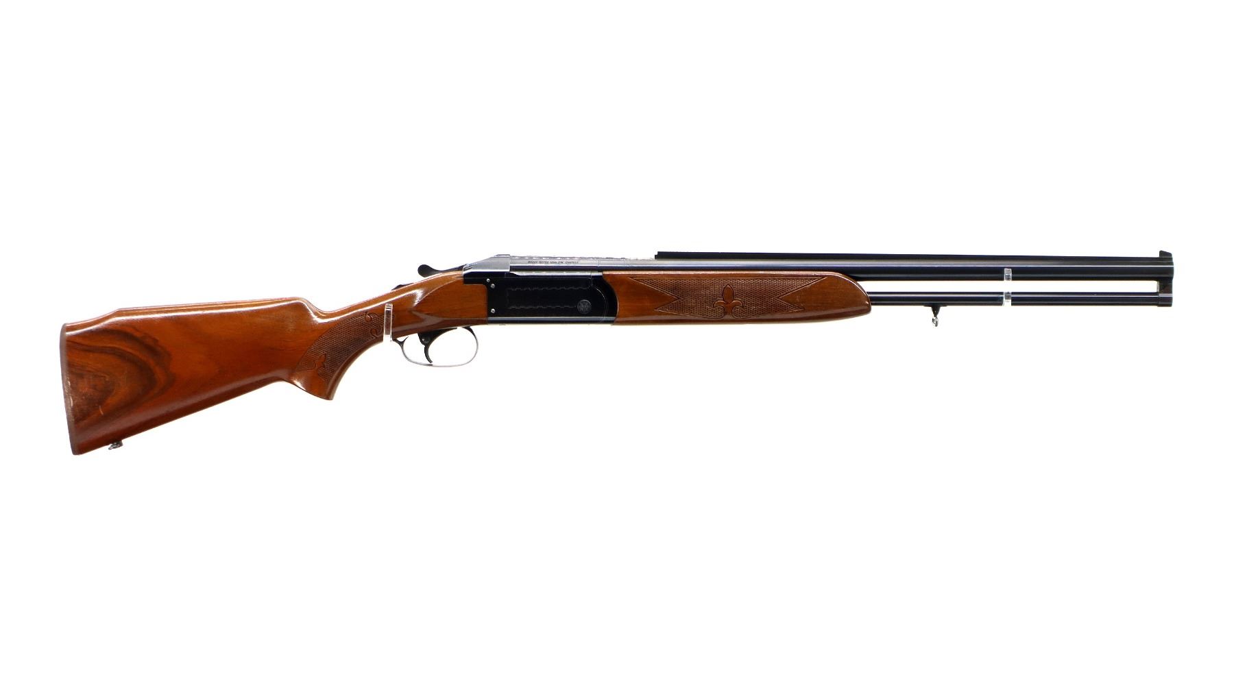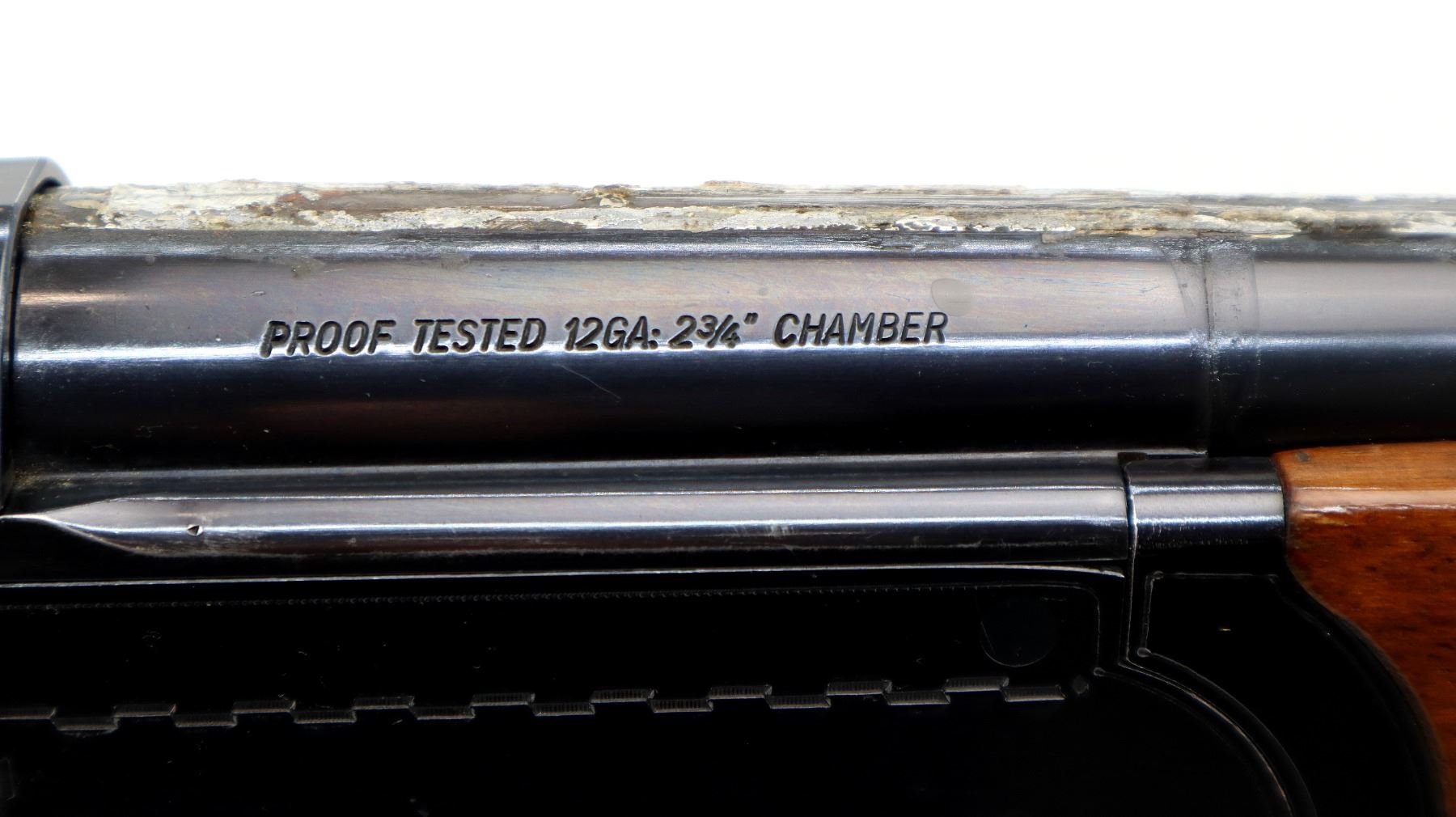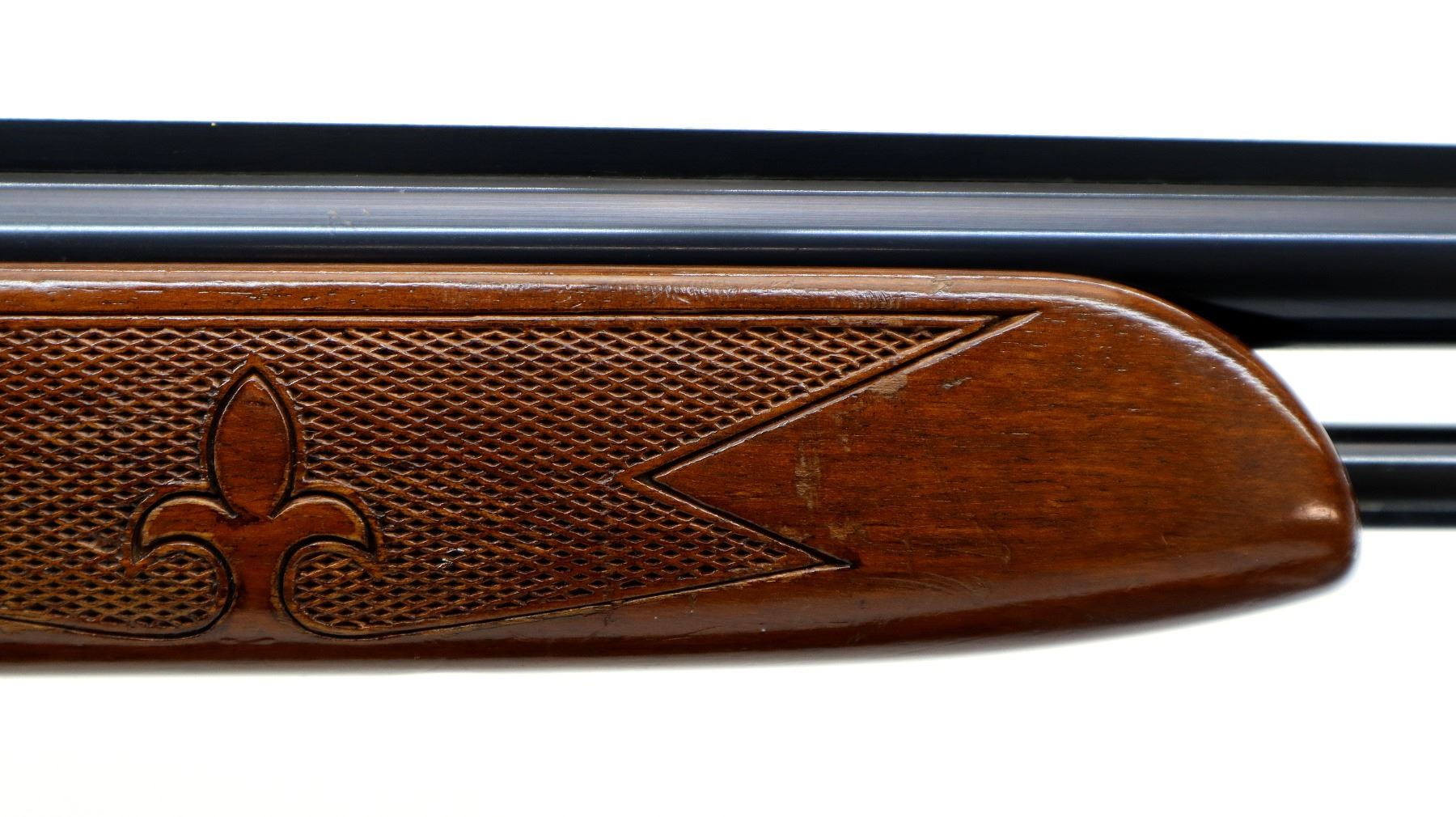 Main Description: Blade front sight, missing rear sight and rear portion of solid rib, blued finish, automatic safety, extractor, single selective mechanical trigger. Two piece wood stocks, checkered forearm and pistol grip, checkered brown polymer butt plate, 13" LOP, sling swivels.