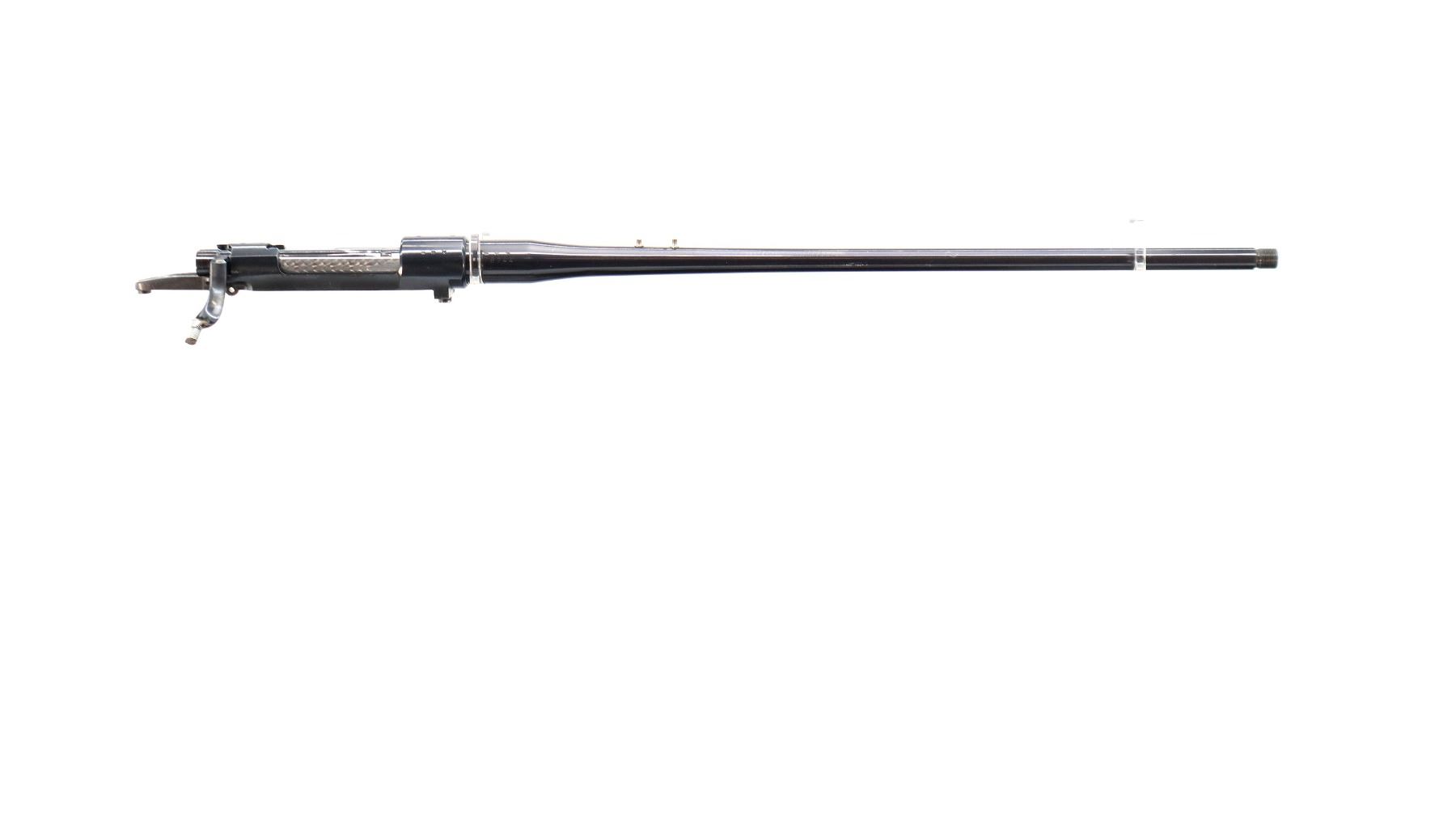 Main Description: No sights, threaded studs on rear of barrel, blued finish threaded muzzle with no cap, receiver drilled and tapped with no plug screws installed, includes bolt body with extractor and collar, modified bolt handle. No other parts or stocks are included.