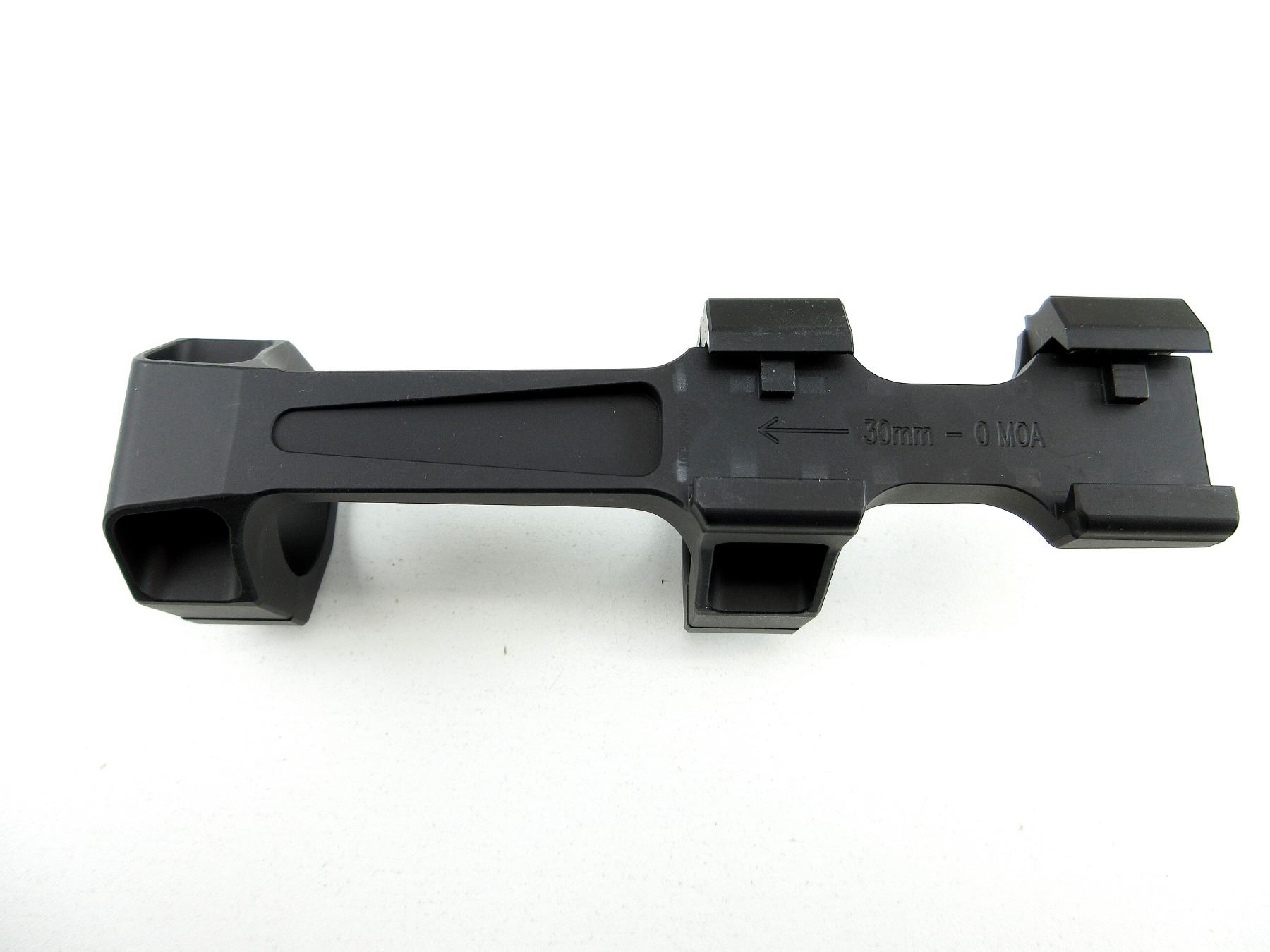 (1) 30MM CANTILEVER MOUNT, 0 MOA, BLACK, POSSIBLY NOS ?, SHOWS LIGHT WEAR / TEAR, OAL APPROX. 6 3/8". MAY REQUIRE FITTING. SEE PHOTOS.