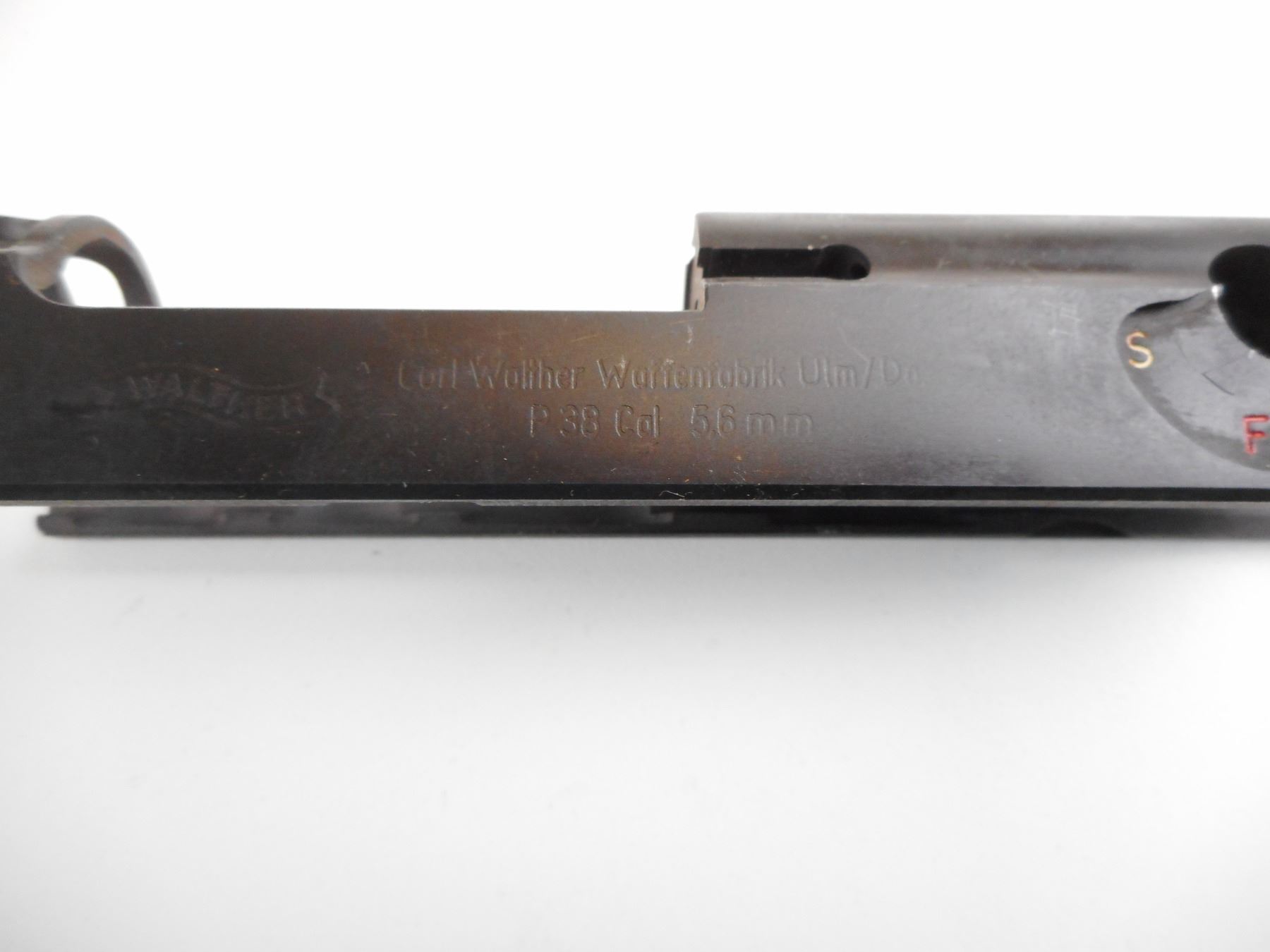 WALTHER P38, 22 LR CONVERSION SLIDE , STRIPPED SLIDE FOR .22 LR, FACTORY WALTHER, MFG, DATED 4/67 WITH VARIOUS PROOF MARKS
