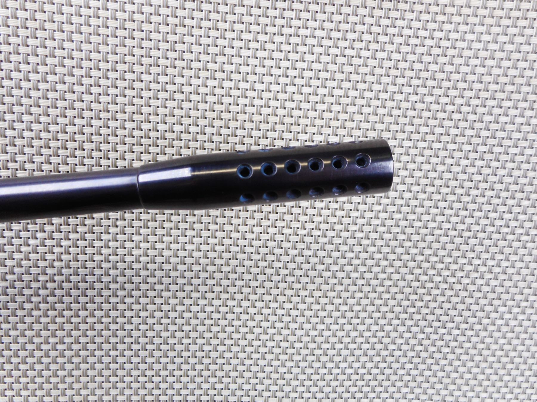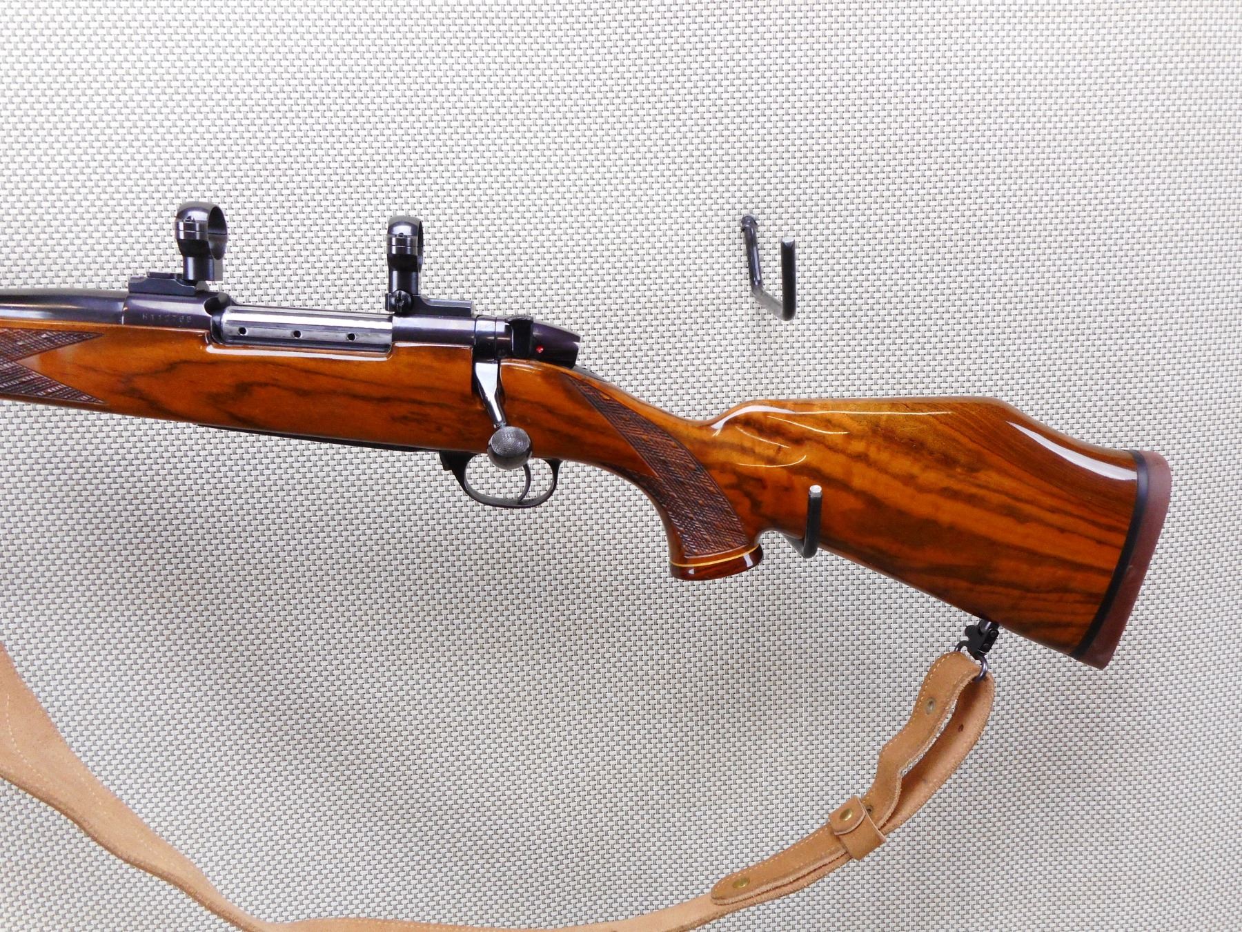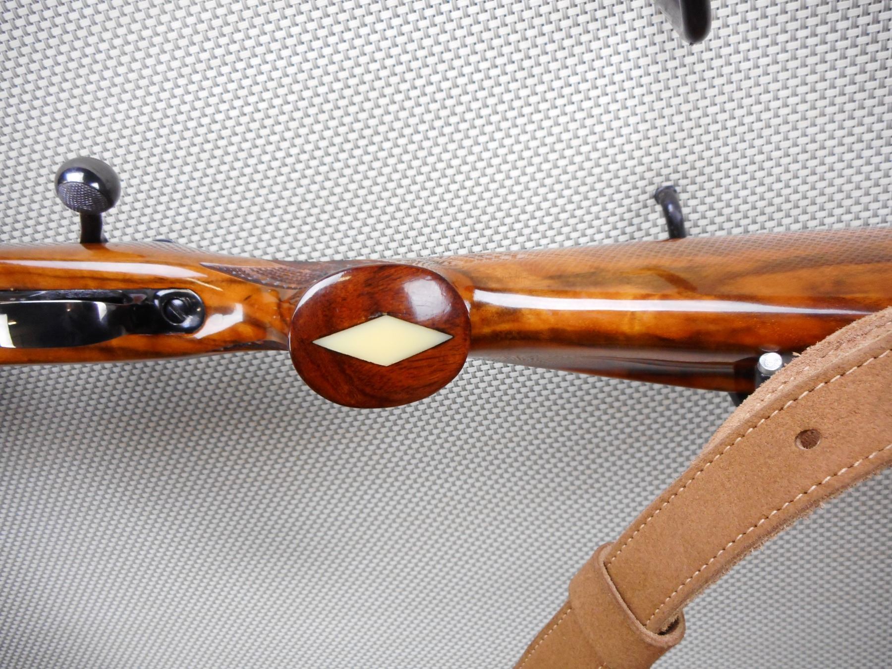 WEATHERBY , MODEL: MK5 LEFT HAND FROM CUSTOM SHOP , CALIBER: 30-06 SPRG , THIS ITEM WAS CUSTOM MADE AT THE WEATHERBY CUSTOM SHOP, HAS AN EXCELLENT BORE, NO SIGHTS HAS ROUND HOLE PORTED MUZZLE BREAK, HIGH POLISH BLUEING, CHECKERED WOOD STOCK WITH BROWN RUBBER RECOIL PAD, STOCK HAS RIGHT SIDE CHEEK REST, ROSE WOOD FOREND CAP, ROSE WOOD PISTOL GRIP CAP, HIGH GLOSS FINISH, HIGHLY FIGURED STOCK, LENGTH OF PULL IS 13", HAS SLING SWIVELS AND BROWN LEATHER SLING, ENGRAVED FLOOR PLATE MARKED WEATHERBY CUSTOM, LEUOPOLD TURN IN 1" RINGS AND BASES, SHOWS MINOR HANDLING MARKS AND WEAR, TYPE: BOLT ACTION RIFLE , BARREL LENGTH: 24", STOCK# 10340, SERIAL # H112766, CONDITION: 9/10, CLASS: CANADIAN NON RESTRICTED CLASS