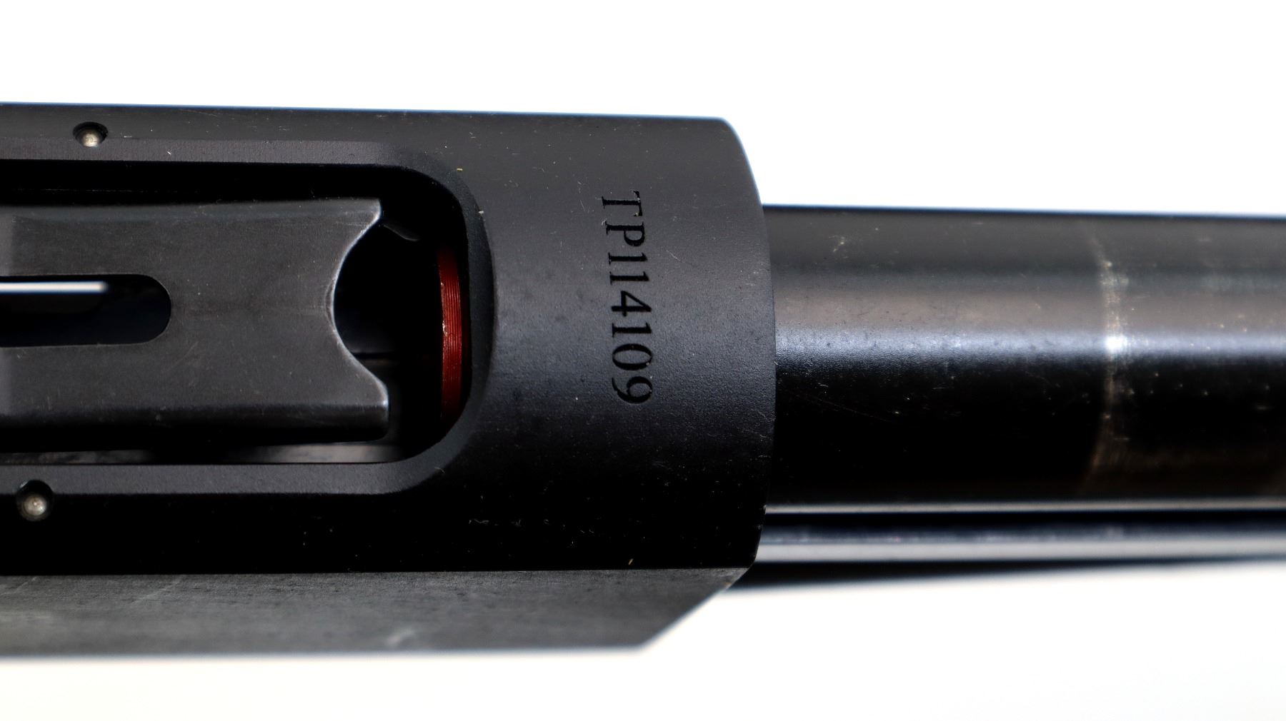 Main Description: Brass bead, Parkerized vent rib barrel, black alloy receiver. One piece finger grooved checkered black polymer forearm, missing complete butt stock assembly and associated parts.