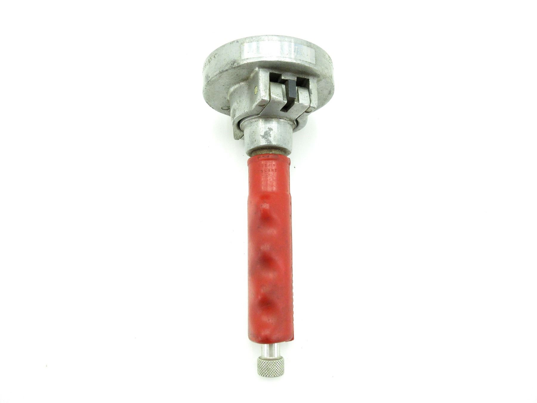 (1) METAL .22 BLACK TARGET LAUNCHER, RED RUBBER GRIP, MARKED: "WEBLEY TARGET LAUNCHER, WEBLEY & SCOTT LTD., MADE IN ENGLAND", "22 BLANK", ETC., APPROX. 3.5' DIA. & OAL APPROX. 7.75". SEE PHOTOS.