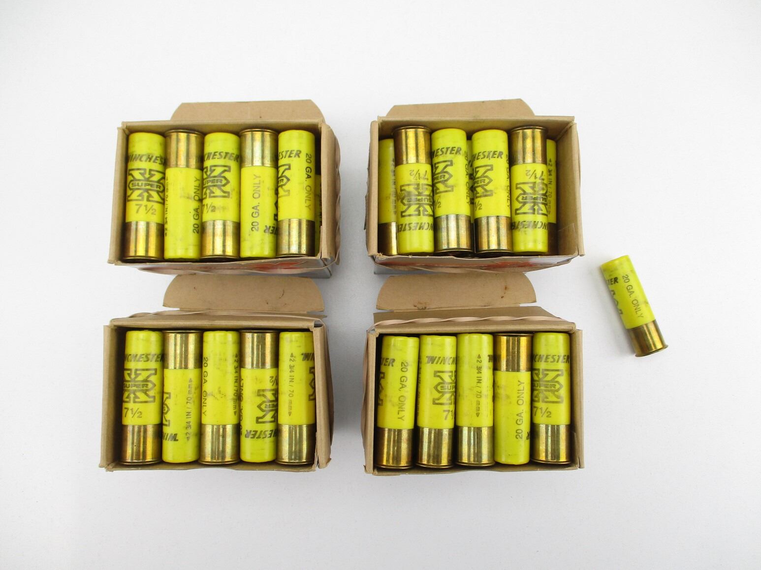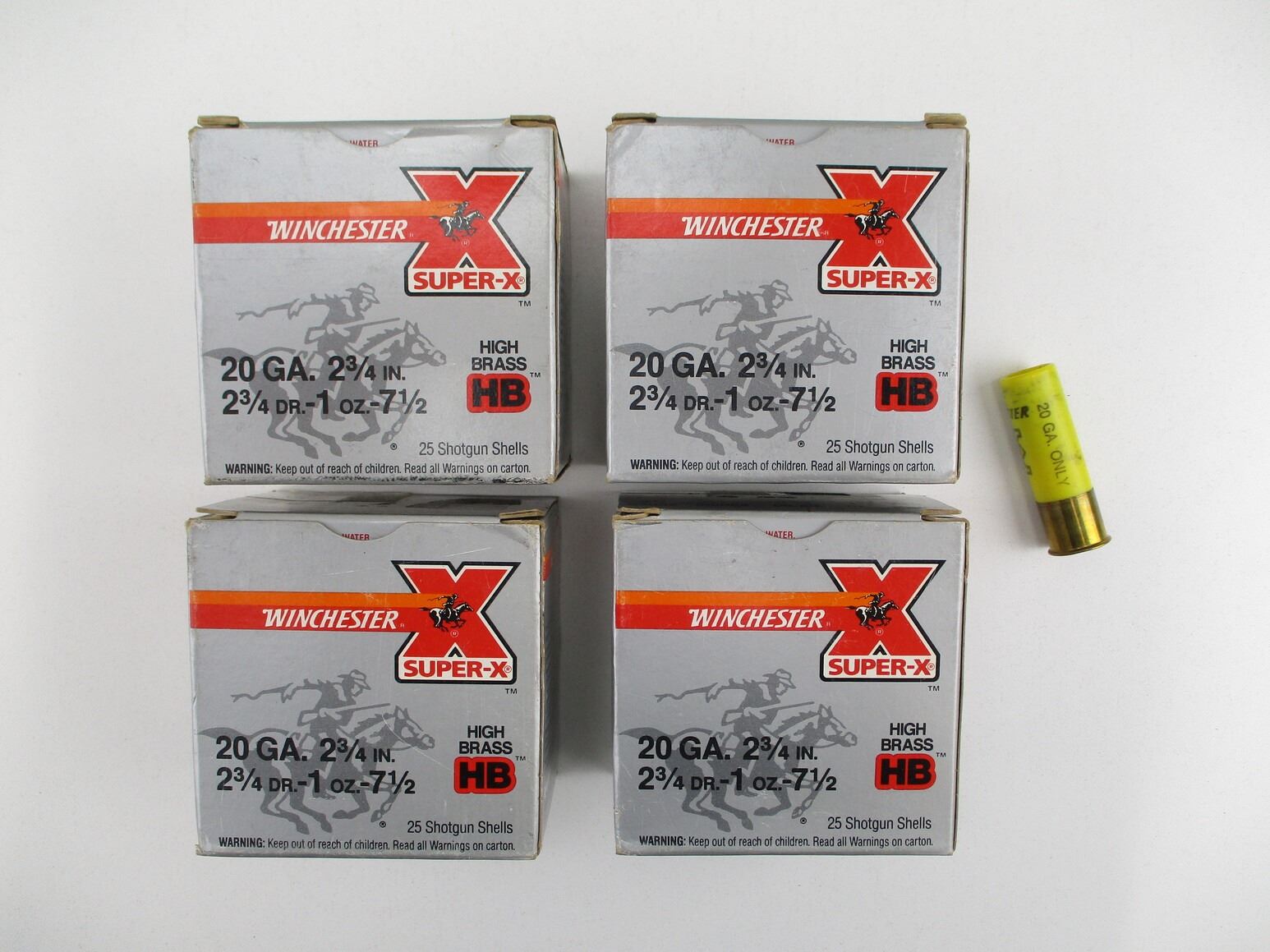WINCHESTER 20 GAUGE SHOT SHELL LOT, 100 RNDS, 2 3/4", SHOT #7 1/2. THERE ARE NEW SHIPPING RESTRICTIONS, PLEASE MAKE SURE YOU HAVE READ AND CONFIRMED WE CAN SHIP TO YOU BEFORE BIDDING ON THIS LOT. PLEASE SEE LOT 0 IN THIS SESSION. NO REFUNDS WILL BE ISSUED, OR BIDS RETRACTED.