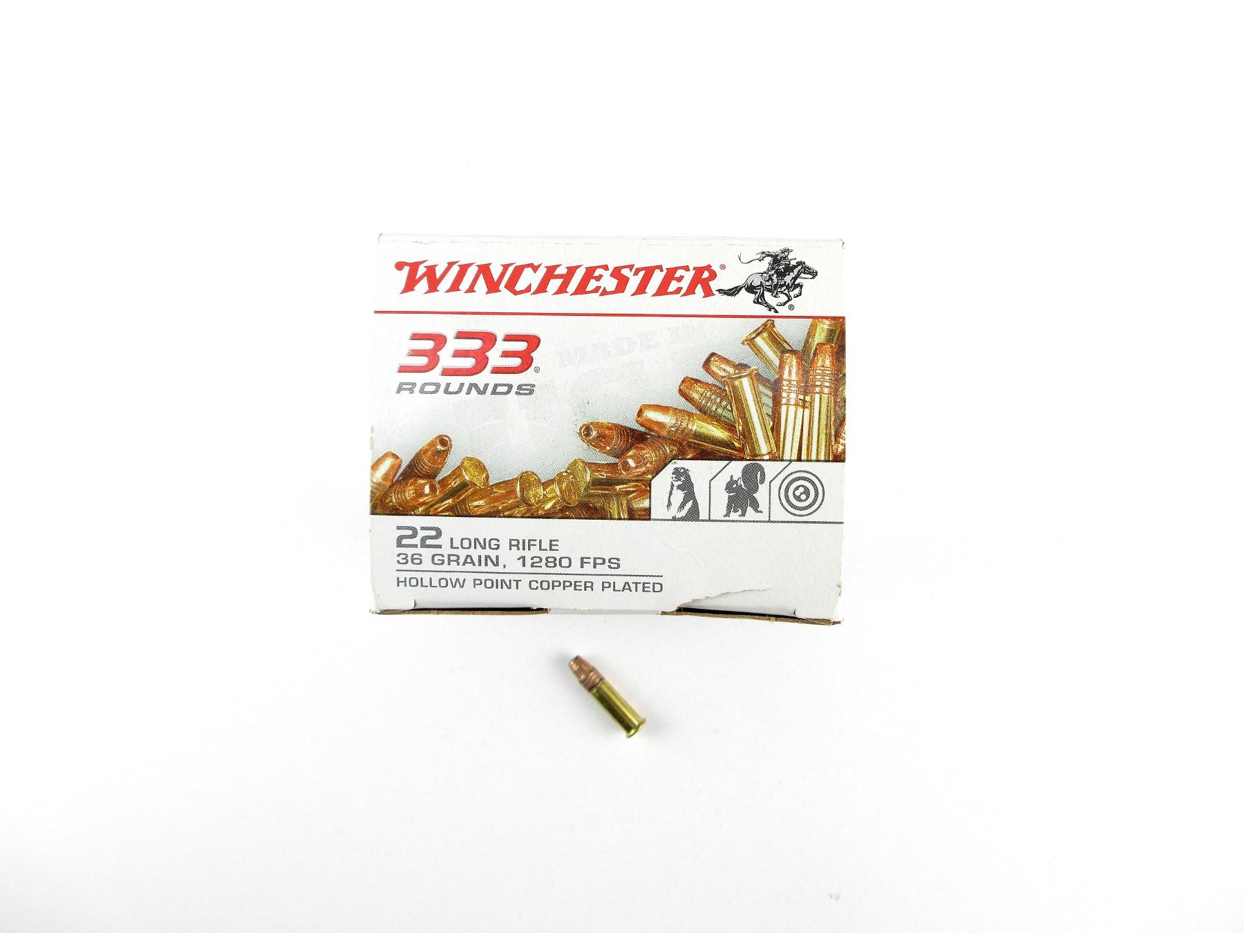 LOT INCLUDES; APPROX. (333) RNDS, 36 GRNS (STATED ON BOX NOT CONFIRMED), HOLLOW POINT COPPER PLATED.