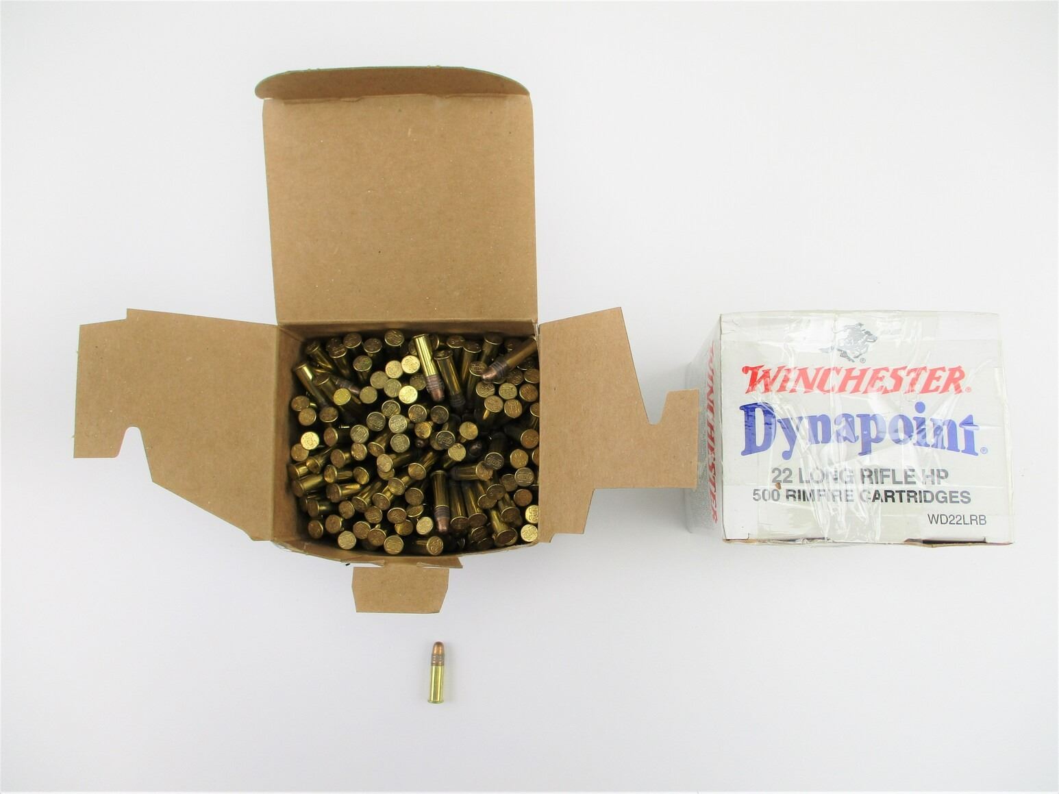 WINCHESTER .22 RIFLE HP AMMO, APPROX 1000 RNDS, 40 GRNS (STATED ON BOX, NOT CONFIRMED),  THERE ARE NEW SHIPPING RESTRICTIONS, PLEASE MAKE SURE YOU HAVE READ AND CONFIRMED WE CAN SHIP TO YOU BEFORE BIDDING ON THIS LOT. PLEASE SEE LOT 0 IN THIS SESSION. NO REFUNDS WILL BE ISSUED, OR BIDS RETRACTED