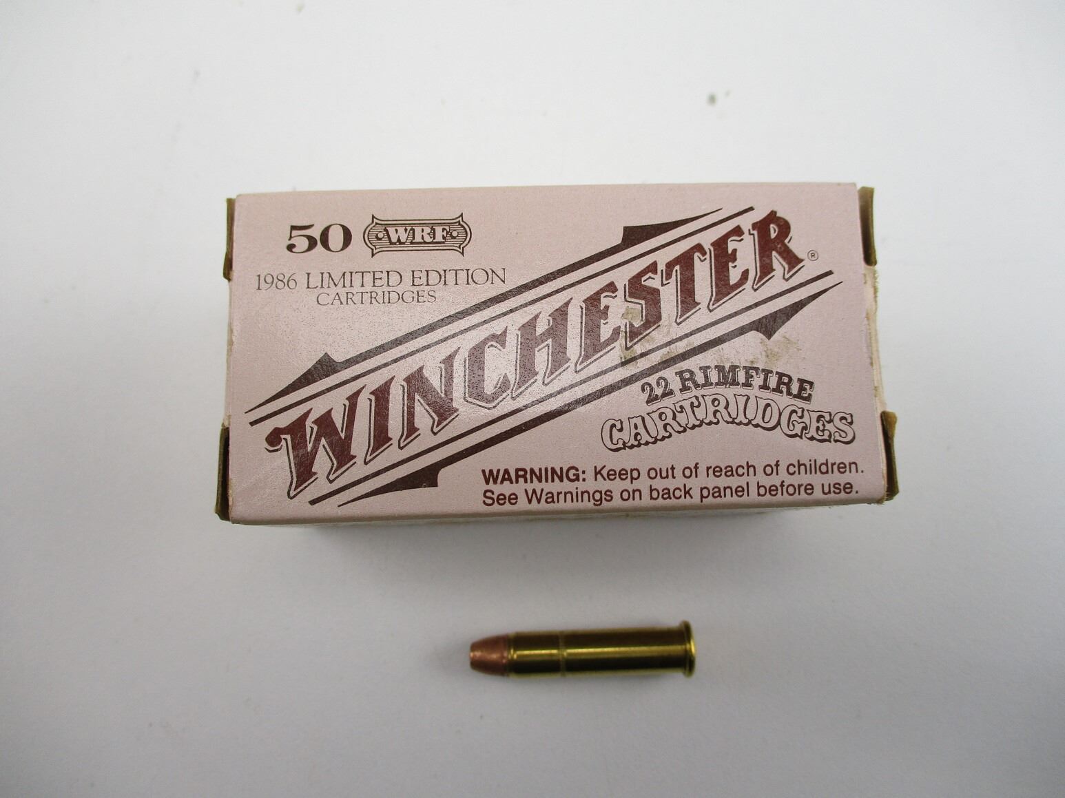 WINCHESTER .22 WRF COLLECTIBLE AMMO , 50 RNDS, IN COLLECTIBLE AMMO BOX , THERE ARE NEW SHIPPING RESTRICTIONS, PLEASE MAKE SURE YOU HAVE READ AND CONFIRMED WE CAN SHIP TO YOU BEFORE BIDDING ON THIS LOT. PLEASE SEE LOT 0 IN THIS SESSION. NO REFUNDS WILL BE ISSUED, OR BIDS RETRACTED.