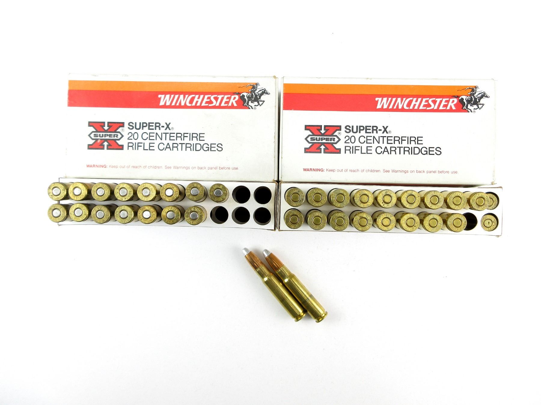 LOT INCLUDES; APPROX. (34) RNDS, 200 GRNS (STATED ON BOXES NOT CONFIRMED), SILVERTIP, (2) NON-PRIMED BRASS CASES.