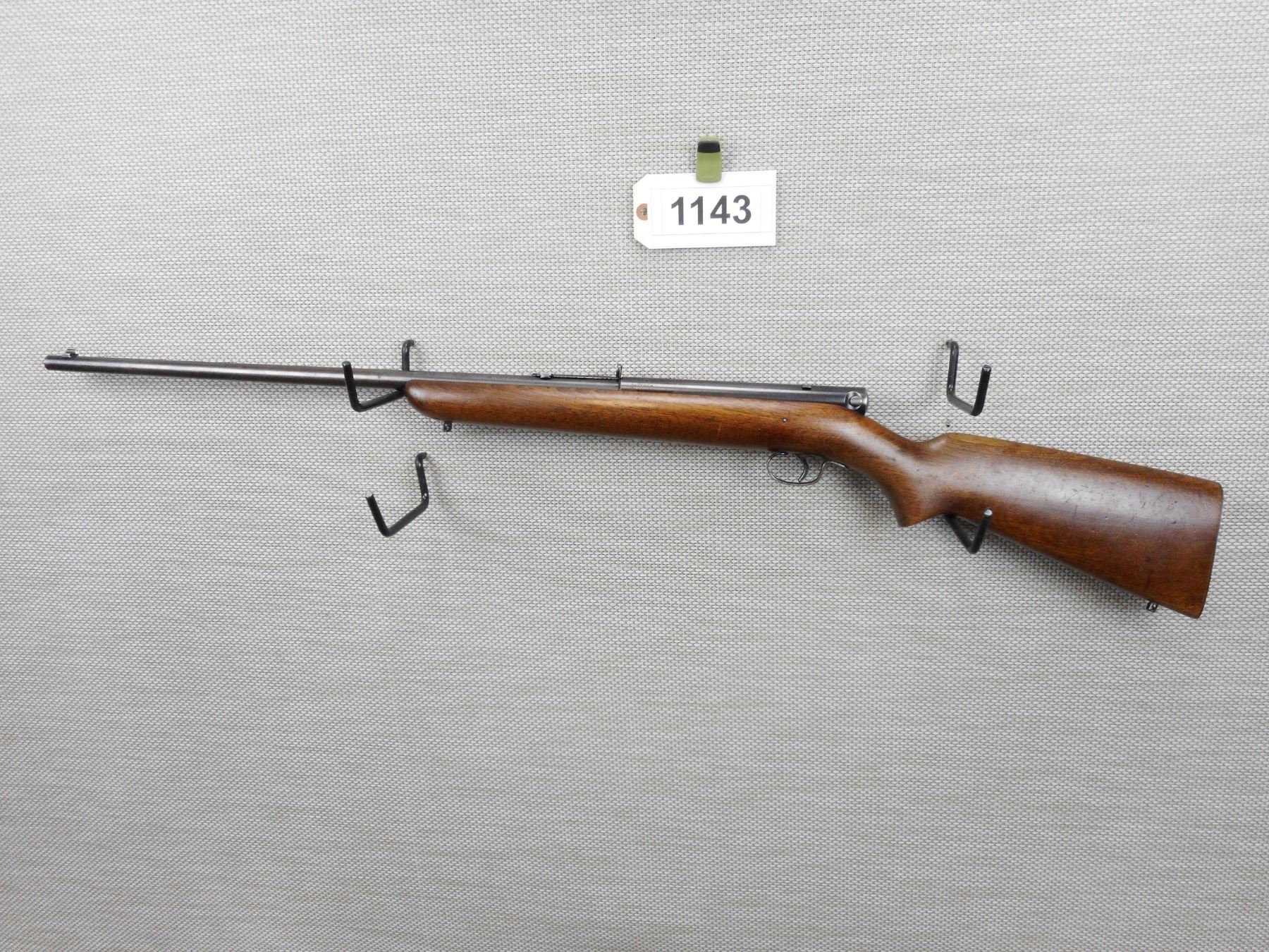 WINCHESTER , MODEL: 74 , CALIBER: 22 LR , GOOD BORE, DOVETAIL FRONT AND FIXED REAR SIGHT, SHOWS SOME HANDLING MARKS, SLING SWIVEL STUDS, STEEL BUTT PLATE , BARREL LENGTH: 22" , SERIAL # 367062A , STOCK # 8512 , CONDITION: 7/10 , CLASS: CANADIAN NON RESTRICTED CLASS