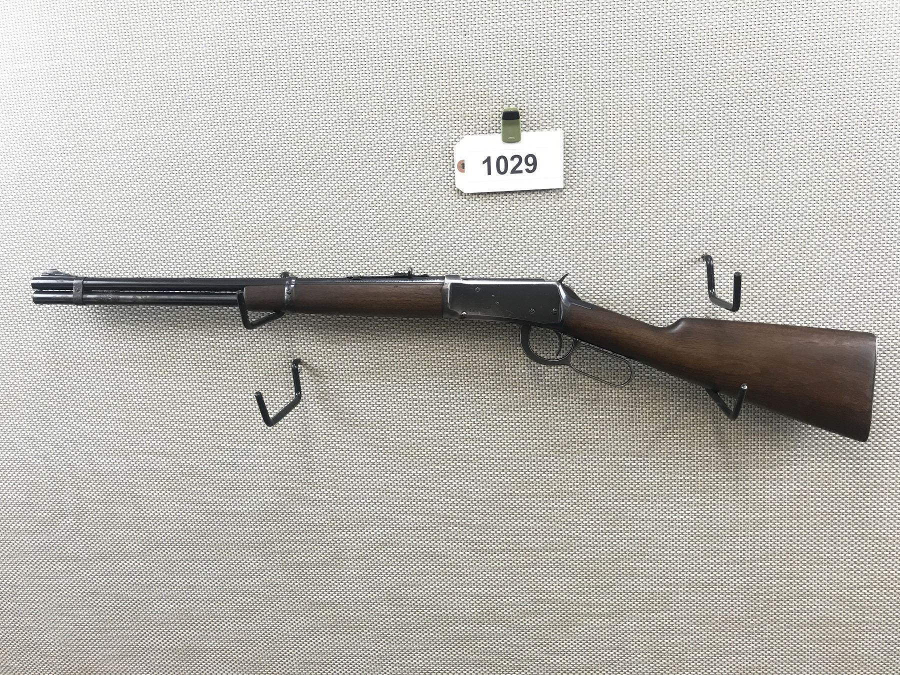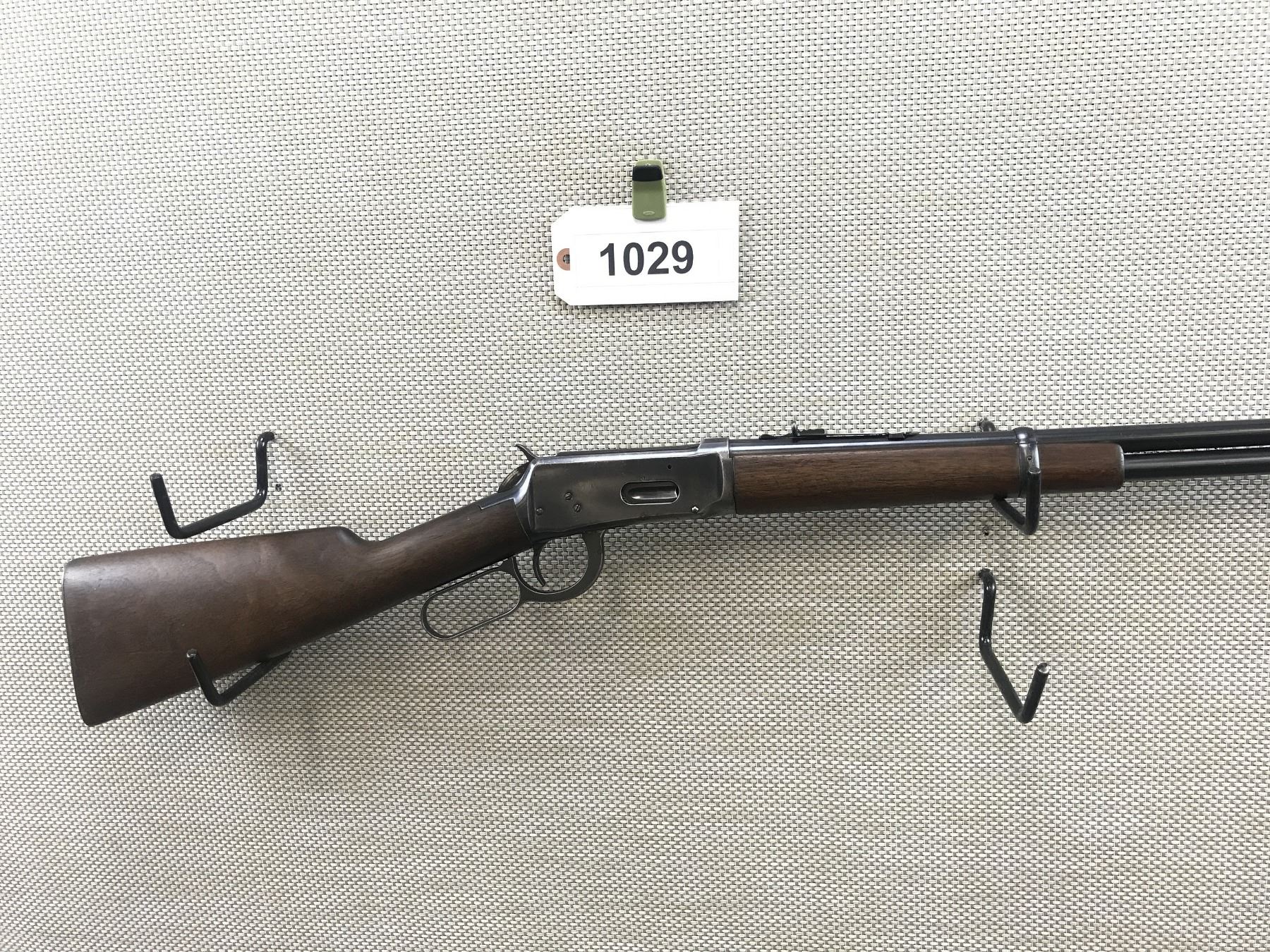 WINCHESTER , MODEL: 94 , CALIBER: 30 WCF , MANUFACTURED IN 1948, VERY GOOD RIFLING, RAISED FRONT AND ADJUSTABLE REAR SIGHT, SHOWS SOME HANDLING MARKS, STEEL BUTT PLATE , BARREL LENGTH: 20" , SERIAL # 1507429 , STOCK # 8398 , CONDITION: 6/10 , CLASS: CANADIAN NON RESTRICTED CLASS