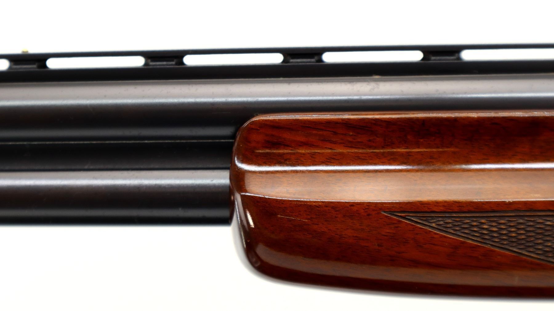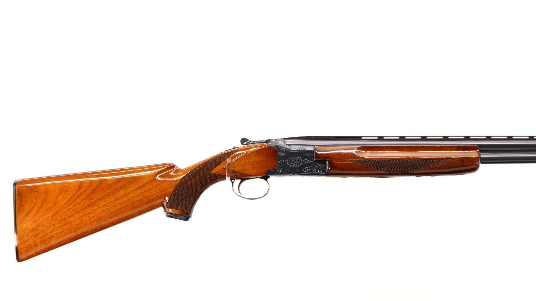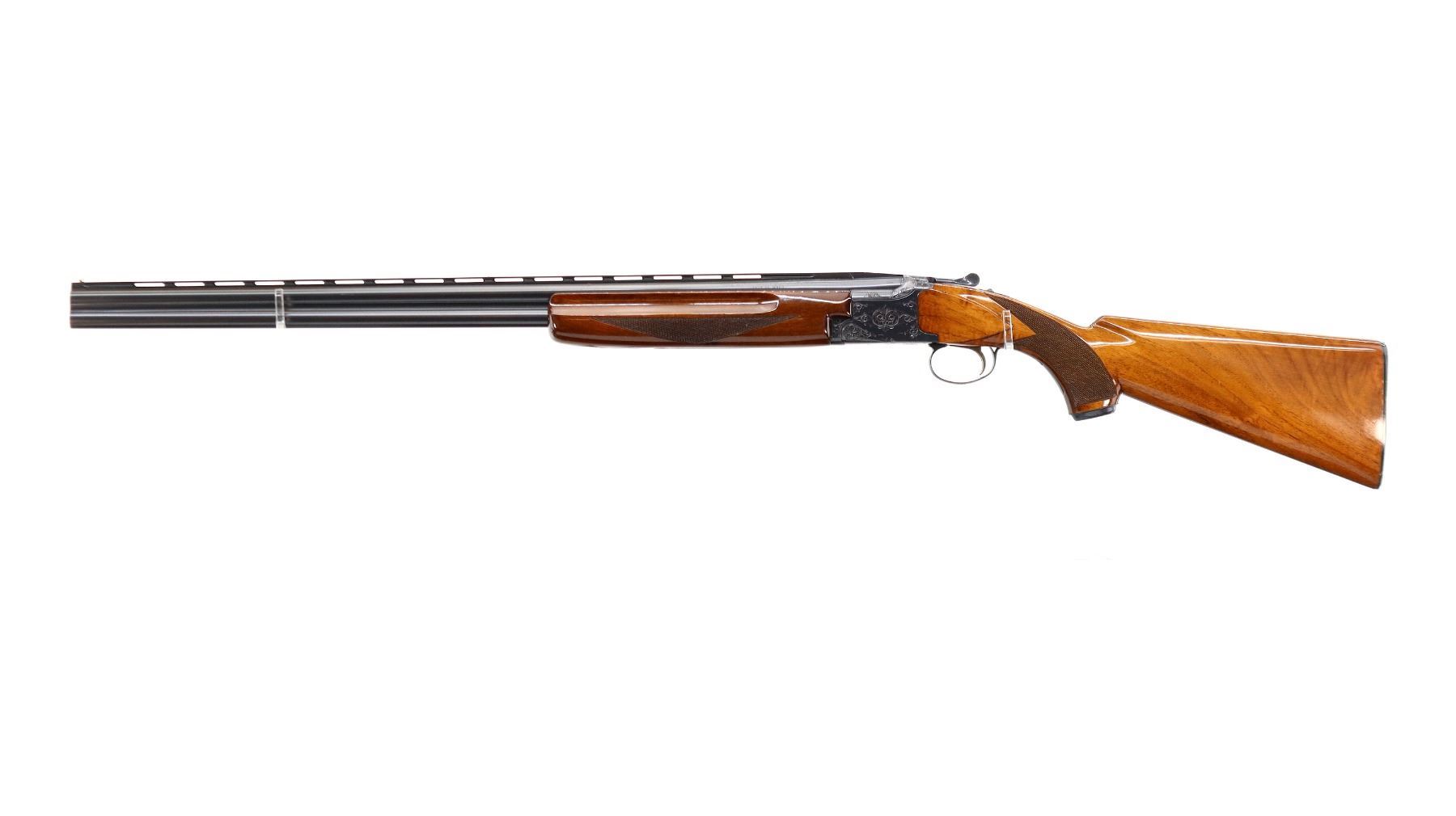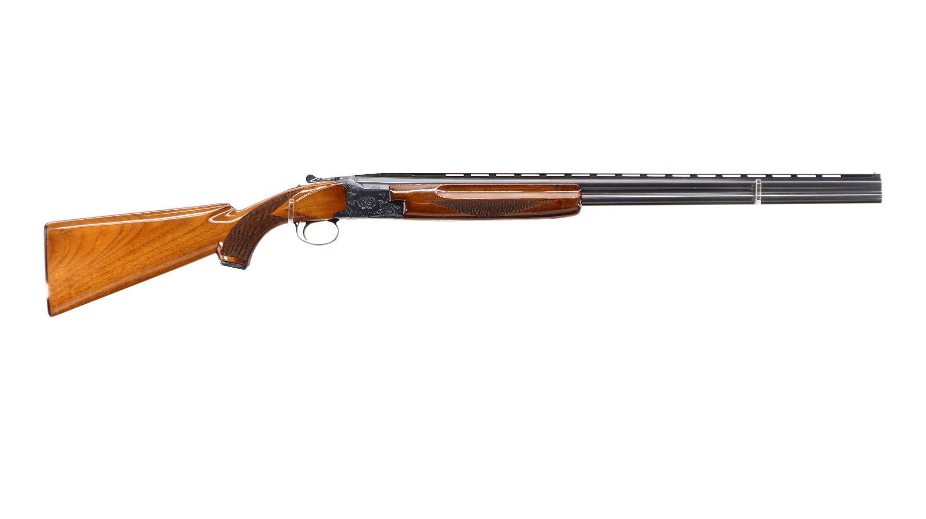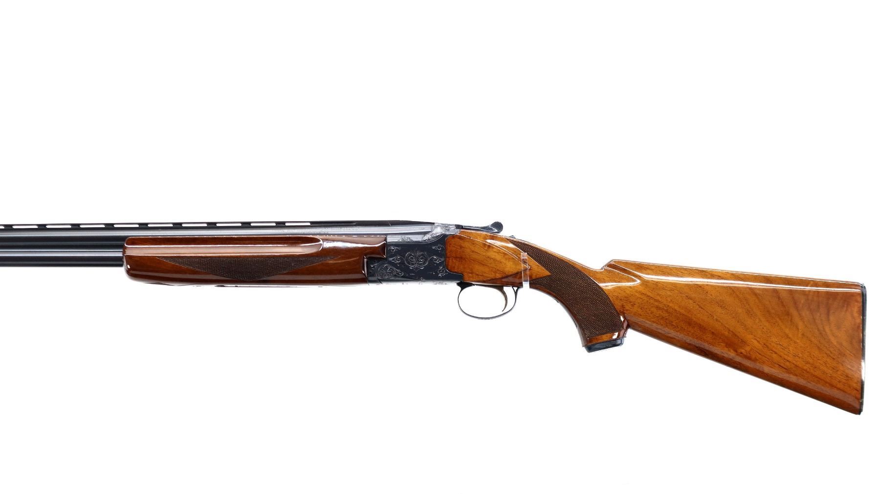 Main Description: Brass front and mid rib beads, Polish blued finish, vent rib, engraved receiver, manual selective safety, ejectors, single inertia trigger. Two piece wood stocks, finger grooved checkered forearm, pistol grip and black polymer butt plate, 14" LOP, steel grip cap.