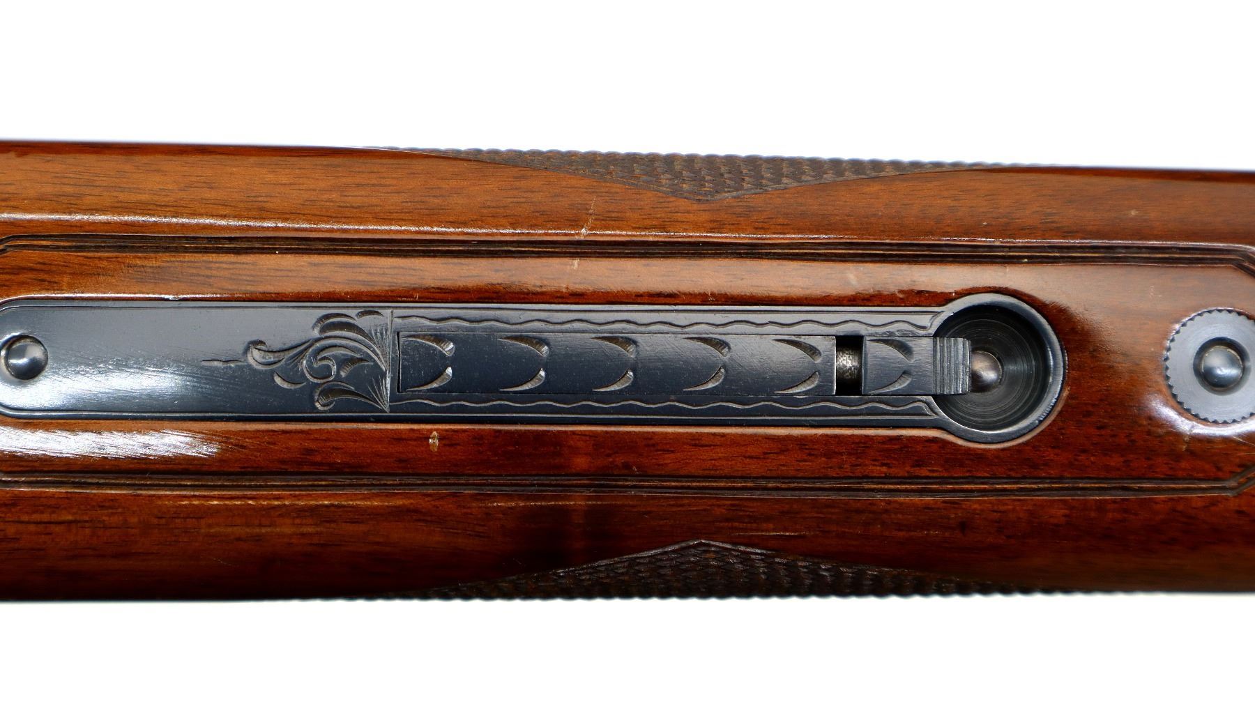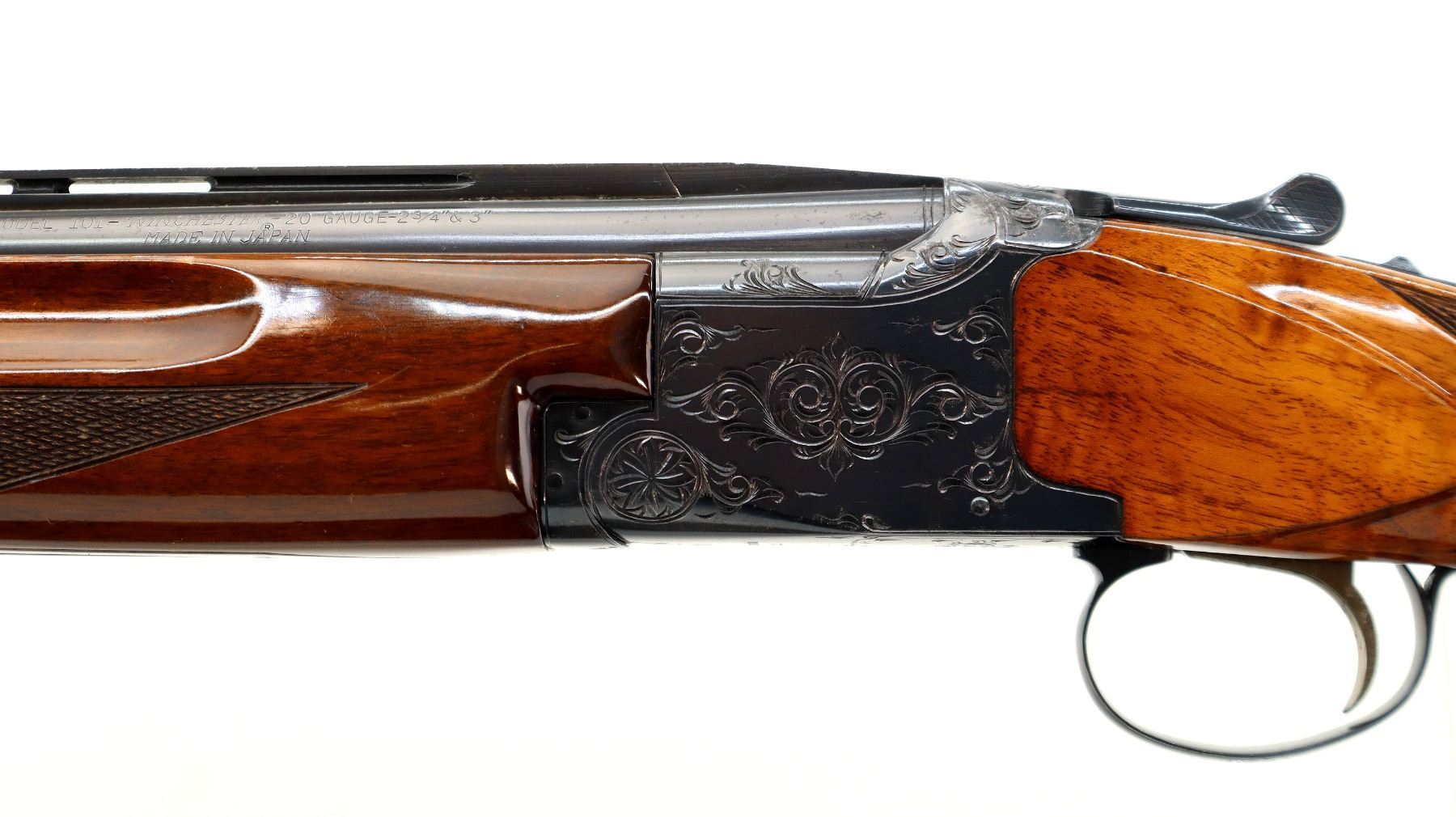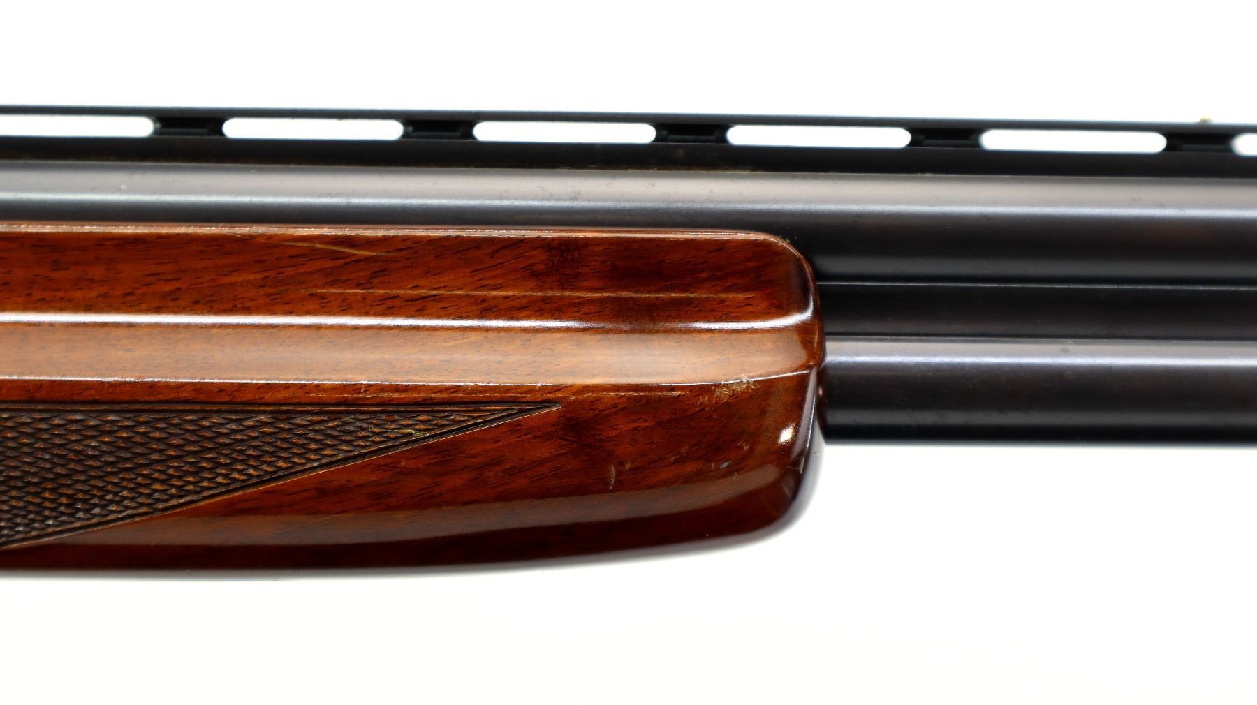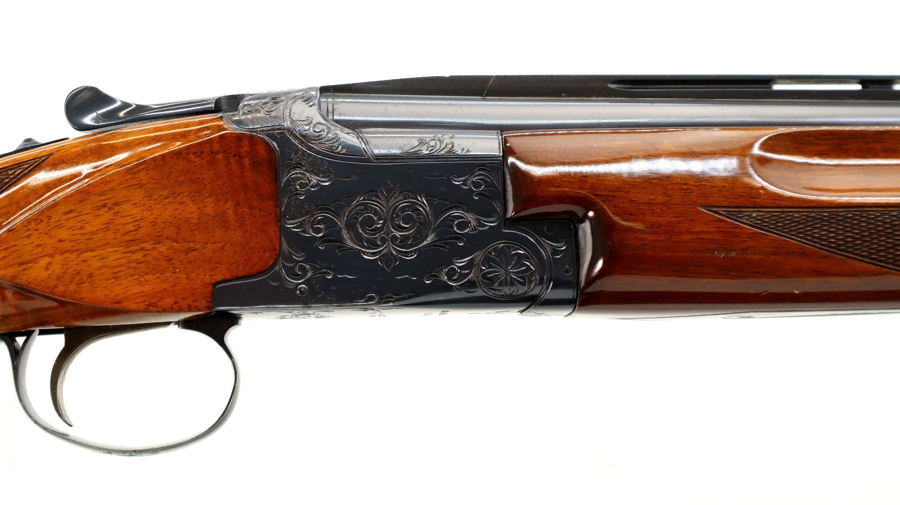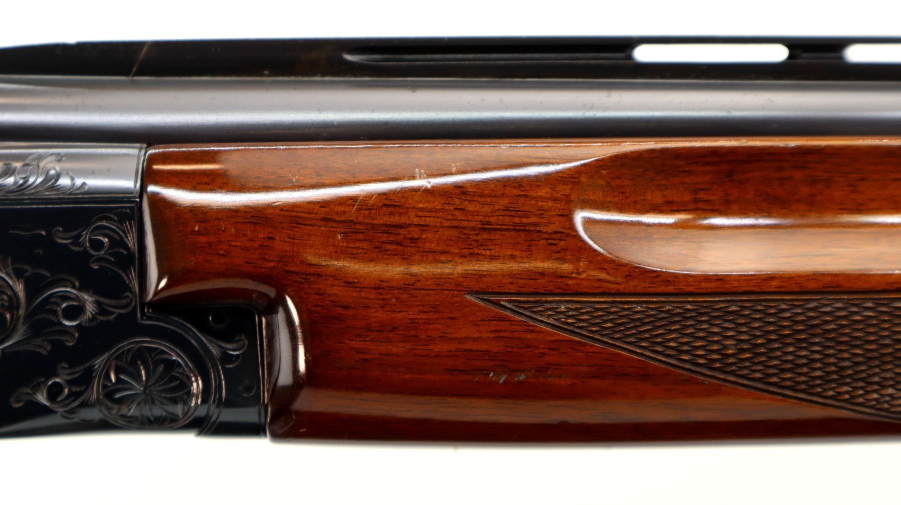 Main Description: Brass front and mid rib beads, Polish blued finish, vent rib, engraved receiver, manual selective safety, ejectors, single inertia trigger. Two piece wood stocks, finger grooved checkered forearm, pistol grip and black polymer butt plate, 14" LOP, steel grip cap.