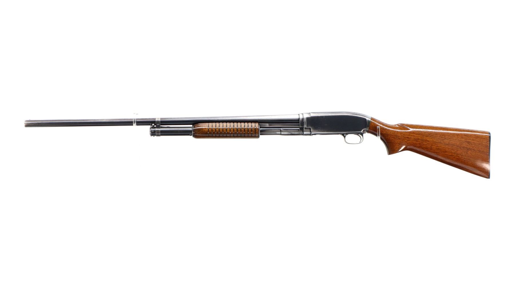 Main Description: Manufactured 1953. Silver bead, blued finish, round barrel. Two piece wood stocks, grooved forearm, pistol grip, checkered black polymer butt plate.
