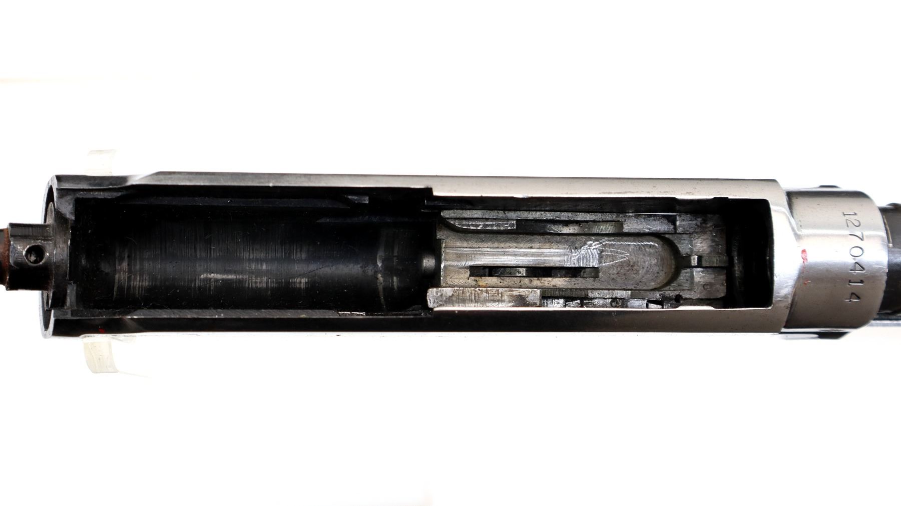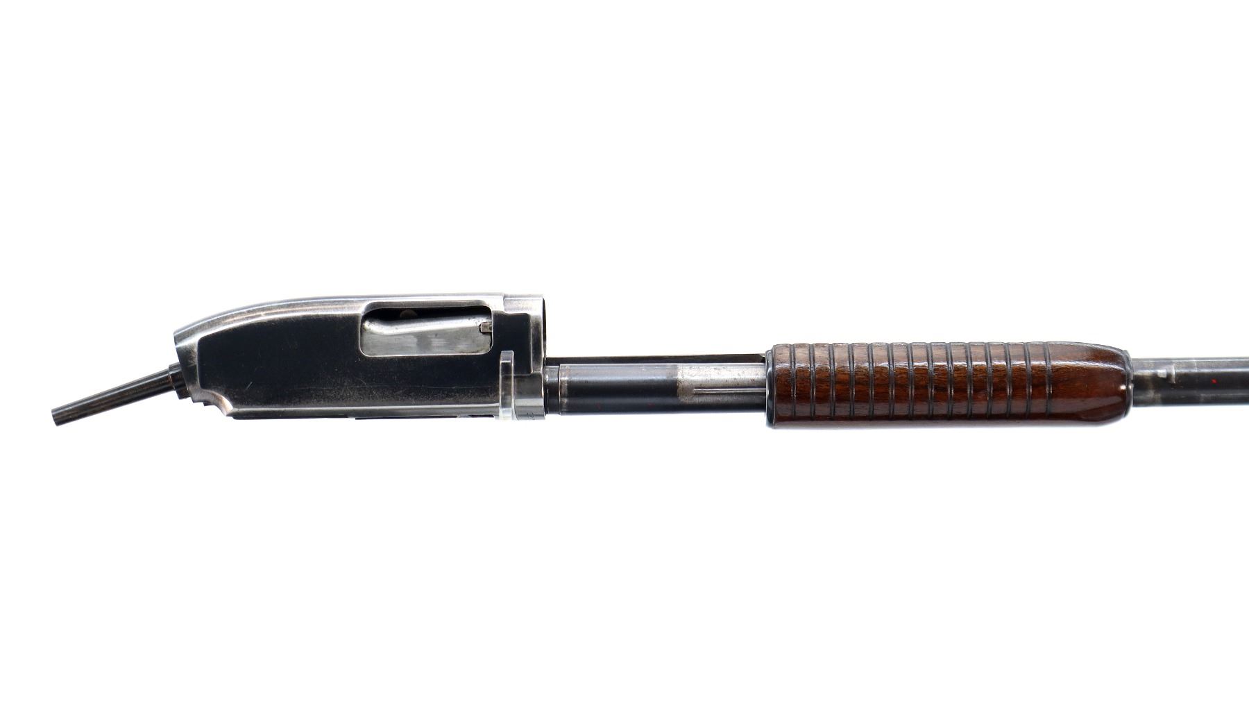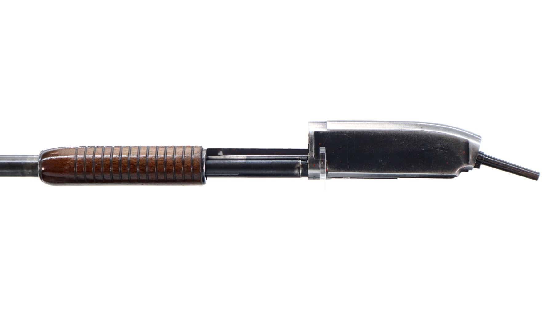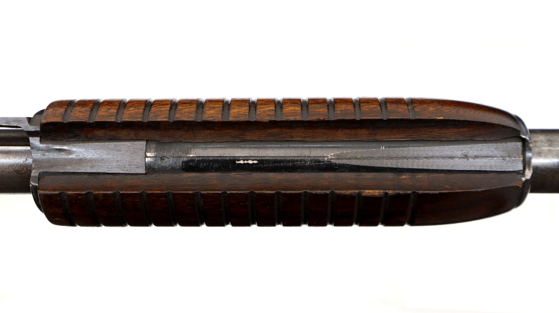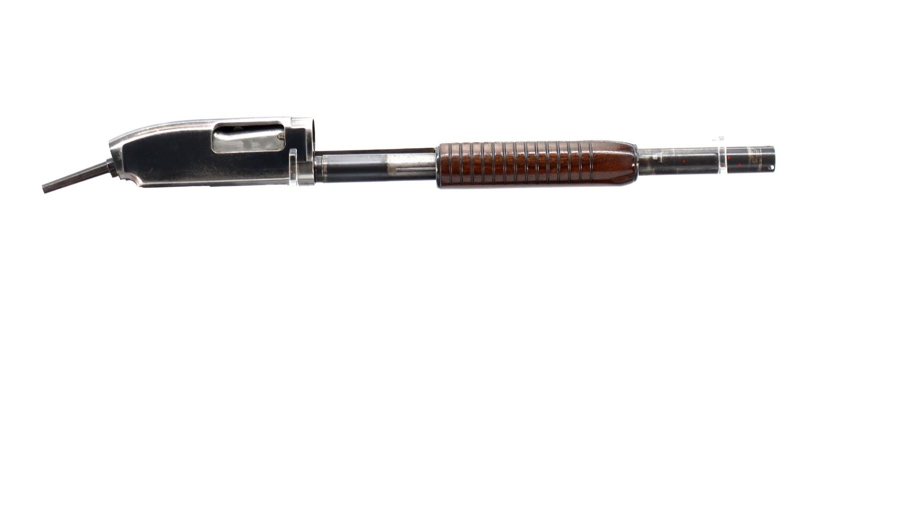 Main Description: Manufactured 1949. Includes blued receiver, magtube, silver bolt and One piece grooved wood forearm with slide. No other parts or barrel included.
