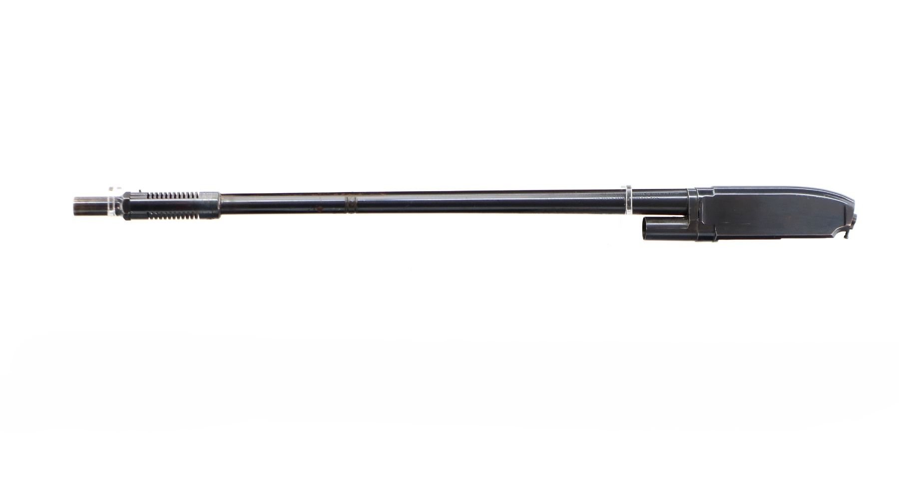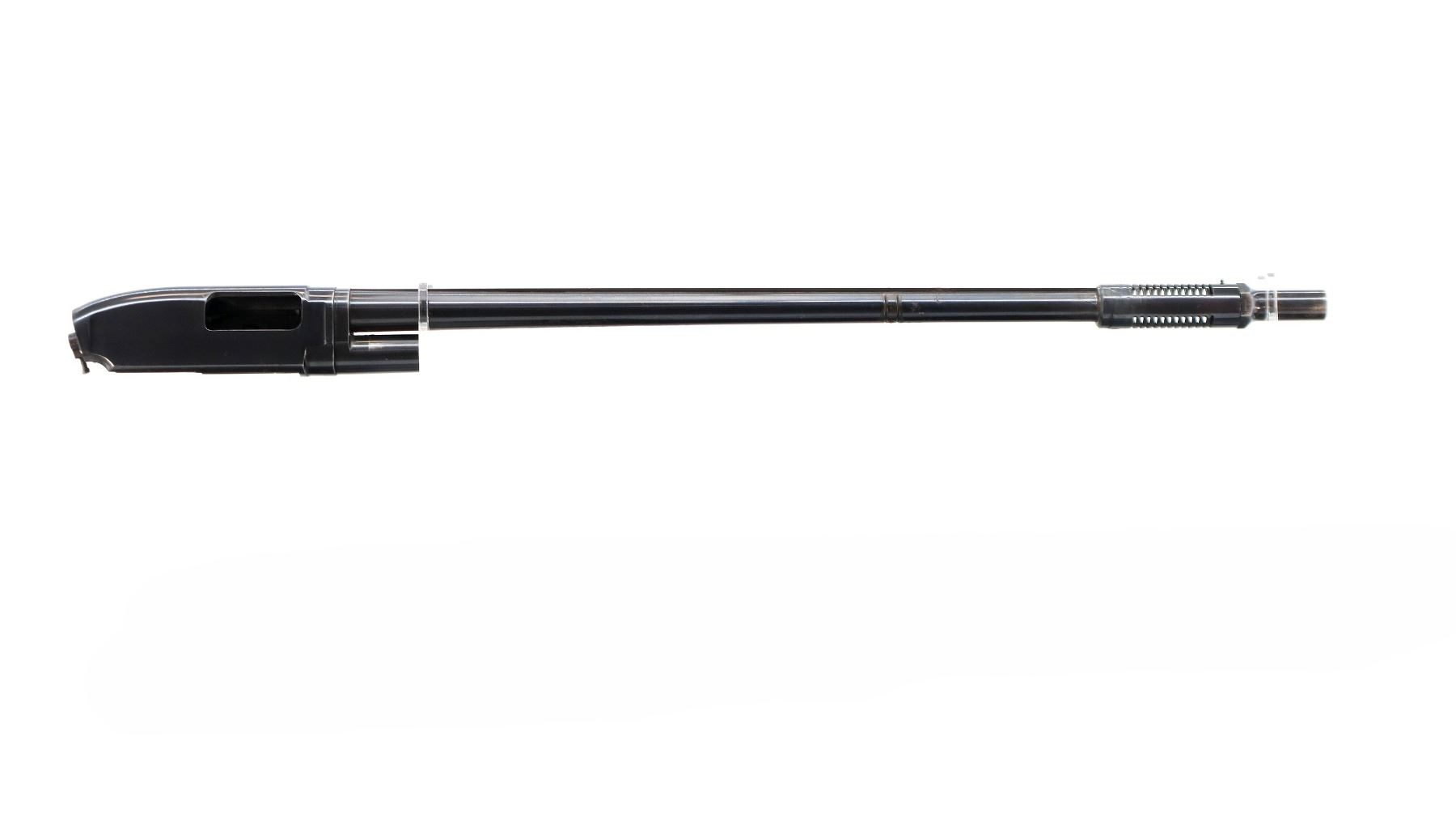 Main Description: Manufactured 1950. Silver bead, mid rib bead is broken, blued finish, solid rib Cutts Compensator installed at muzzle, includes bolt assembly. No other parts or Stocks are included.