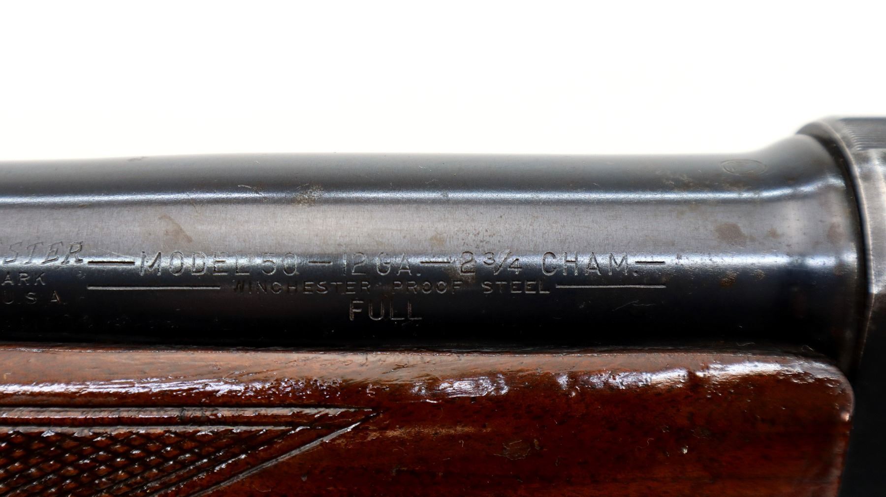 Main Description: Manufactured 1956. Missing front bead hole is present, blued finish, round barrel, receiver has a threaded hole near the rear. Two piece wood stocks, checkered forearm and pistol grip, checkered black polymer butt plate, stock chipped at toe.