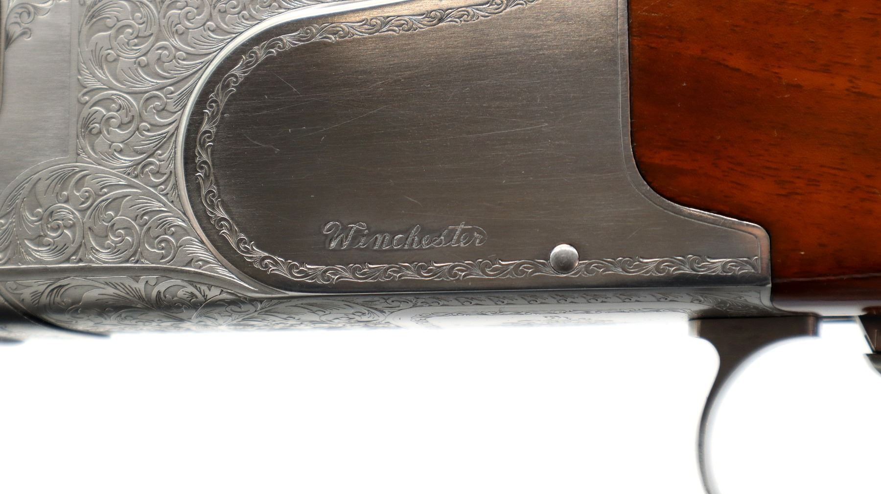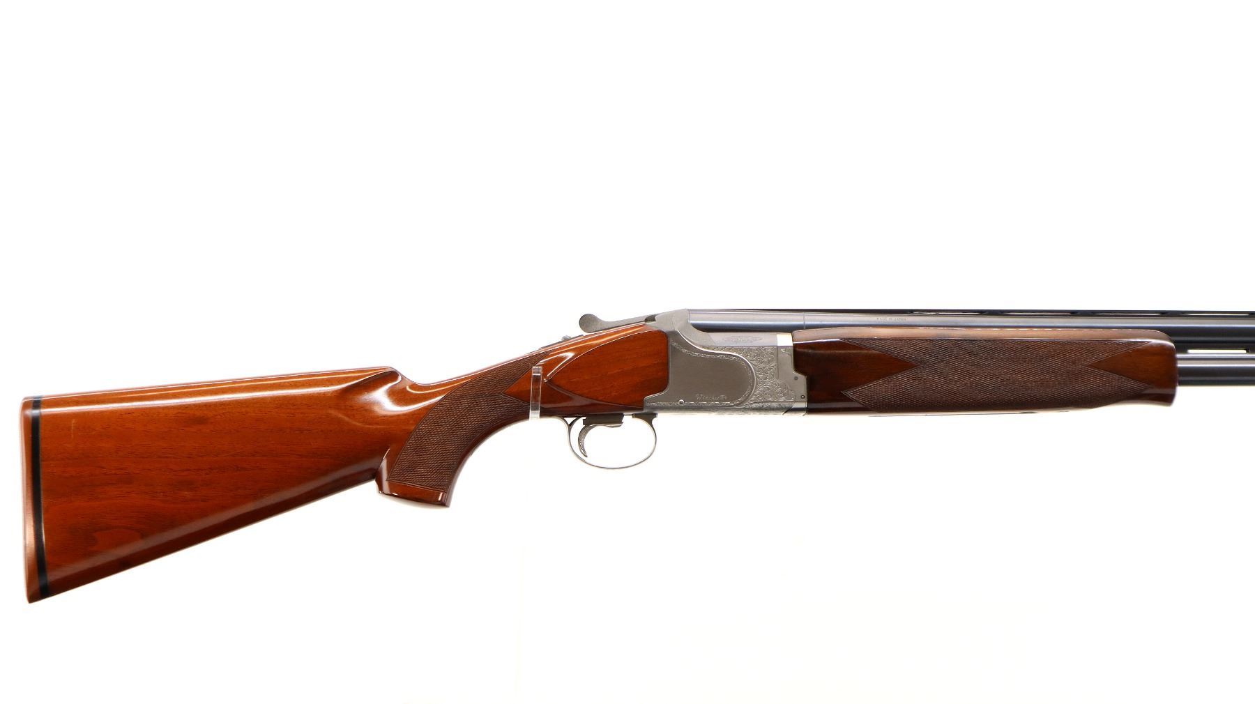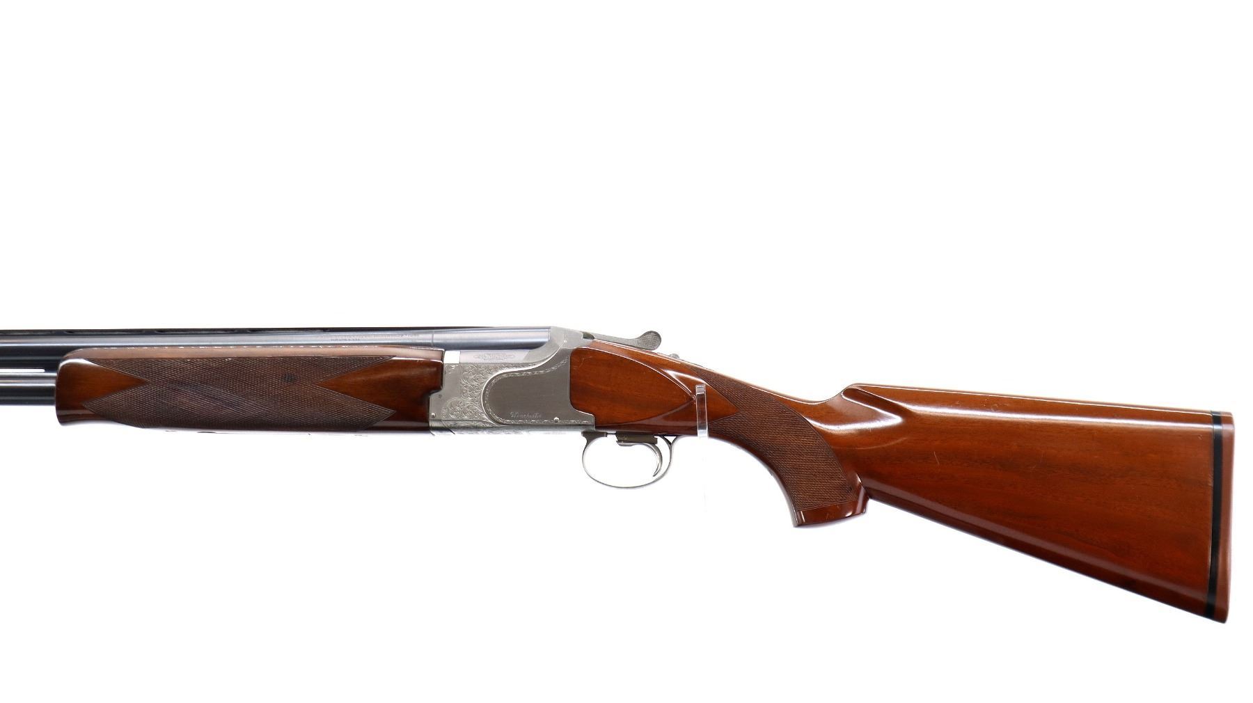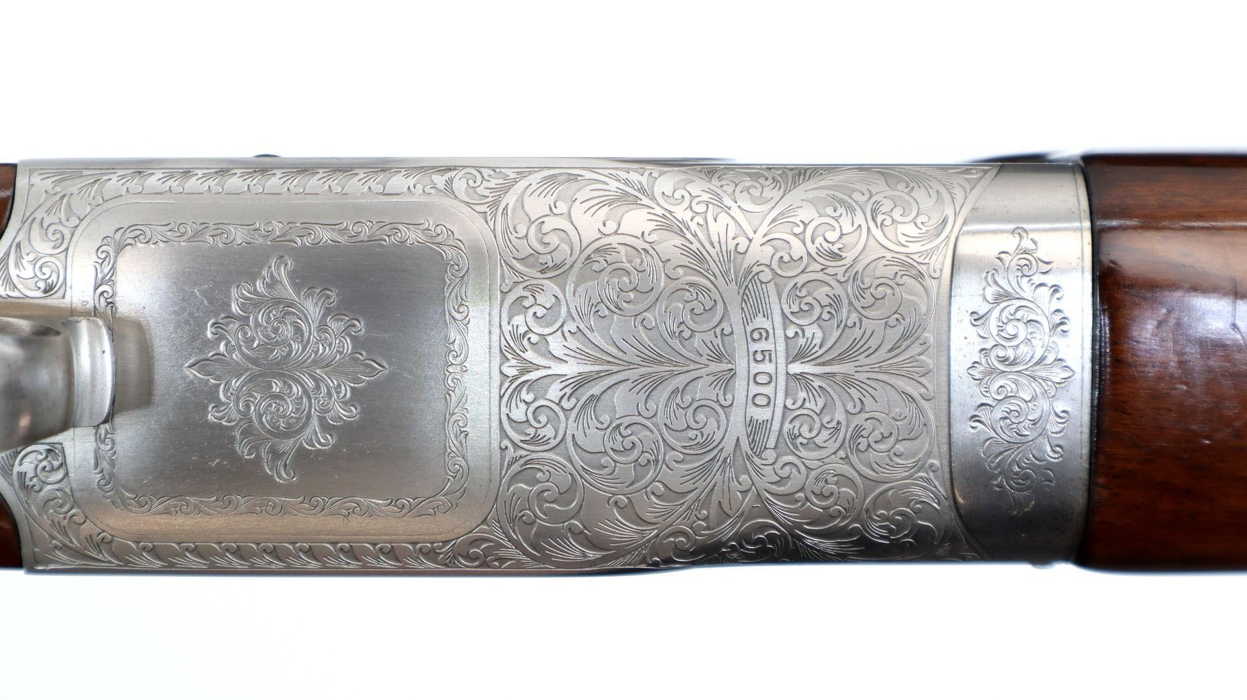 Main Description: White front bead, blued vent rib ported barrels, engraved polished and matte silver receiver, manual selective safety, ejectors, adjustable single silver mechanical trigger. Two piece wood stocks, checkered forearm and pistol grip, brown rubber recoil pad, 14.25" LOP