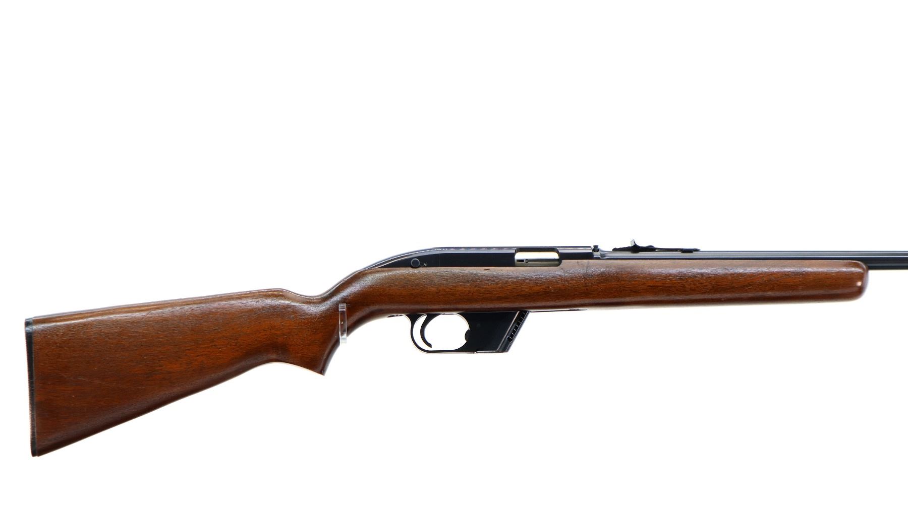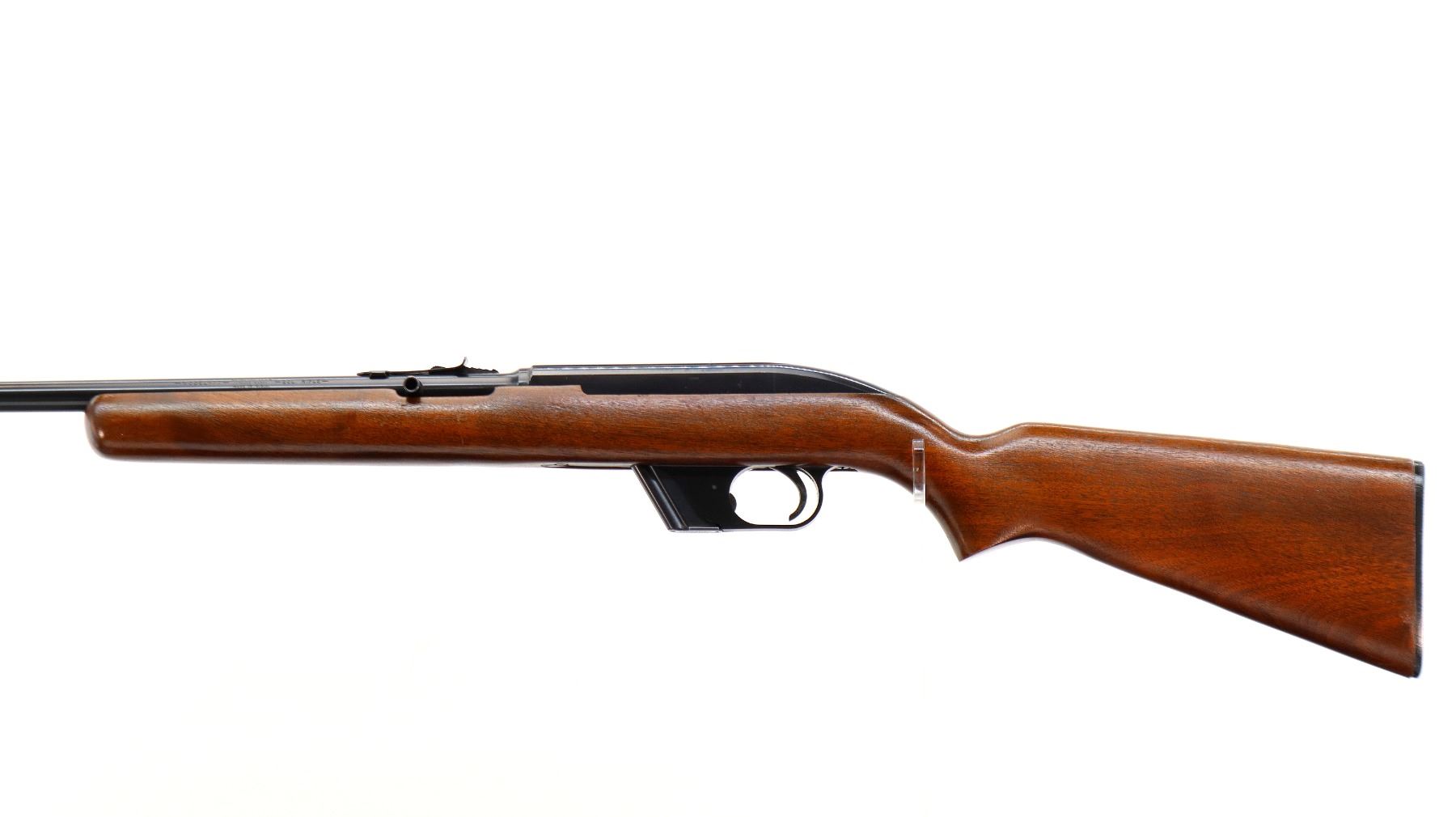 Main Description: Blade front sight, adjustable u notched rear sight, blued finish, grooved receiver. One piece wood stock, pistol grip, checkered black polymer butt plate