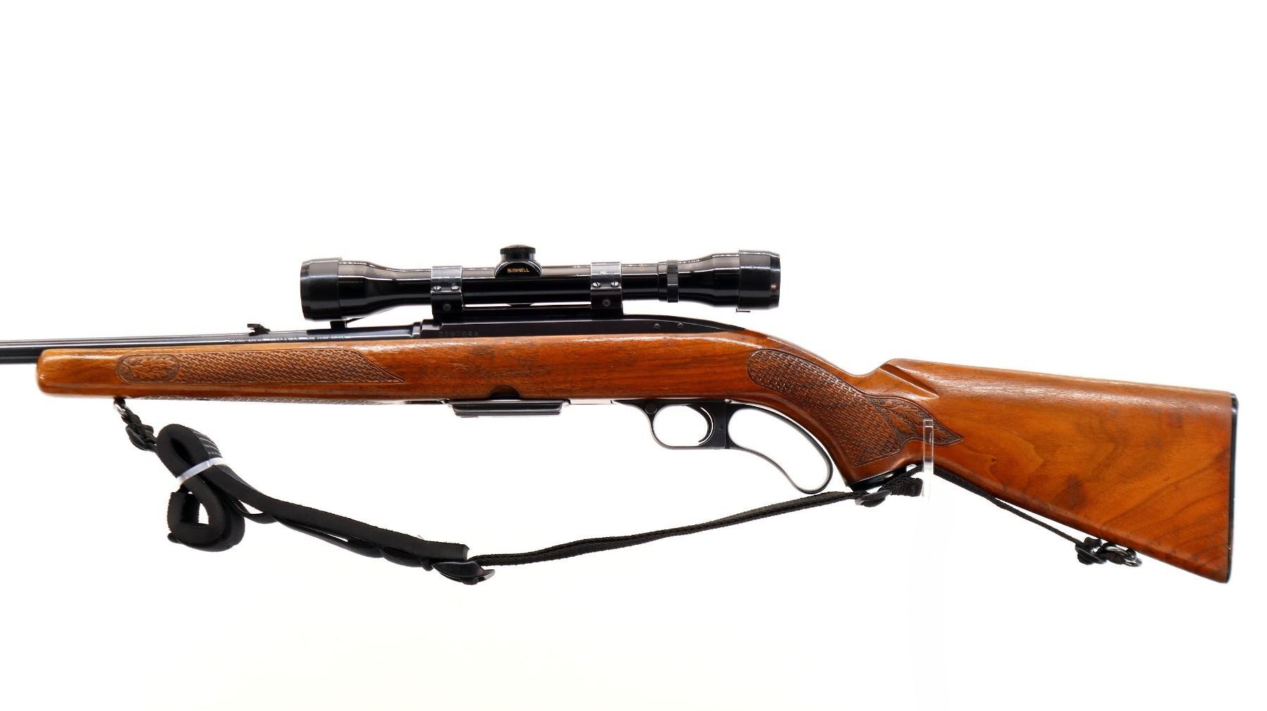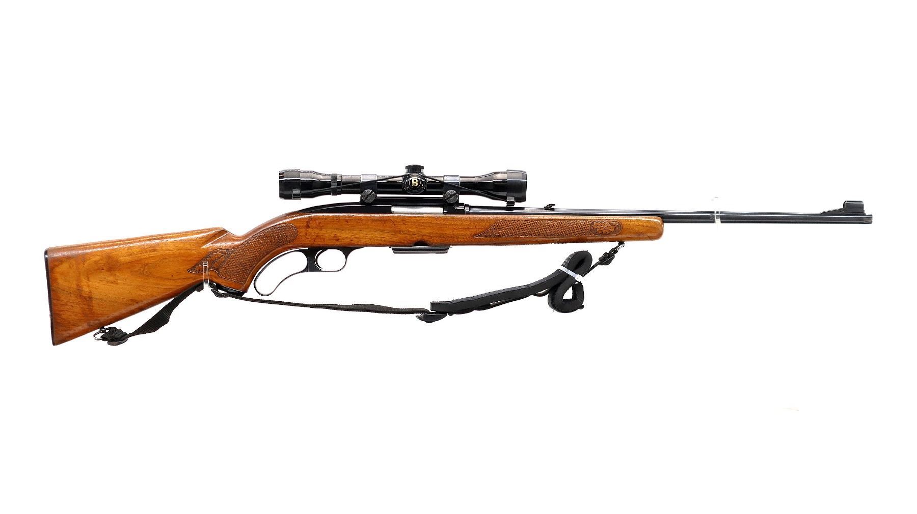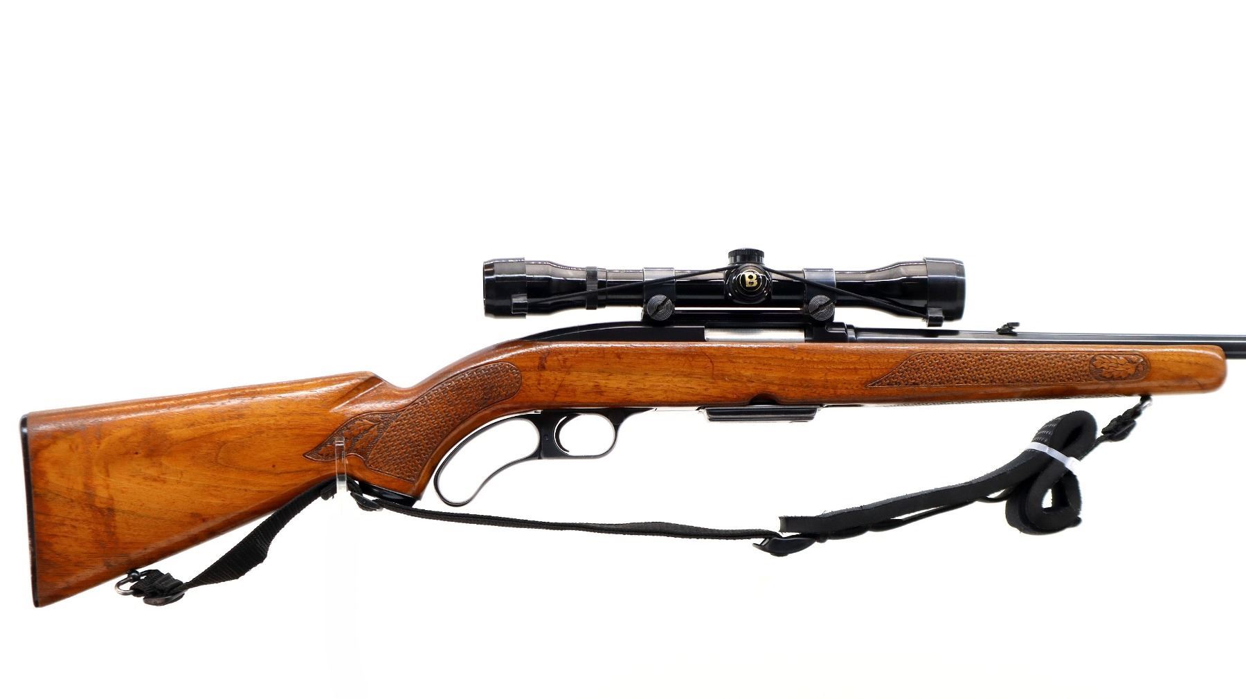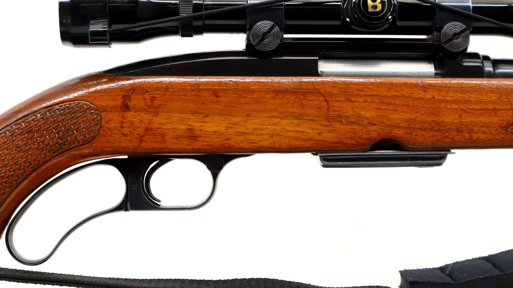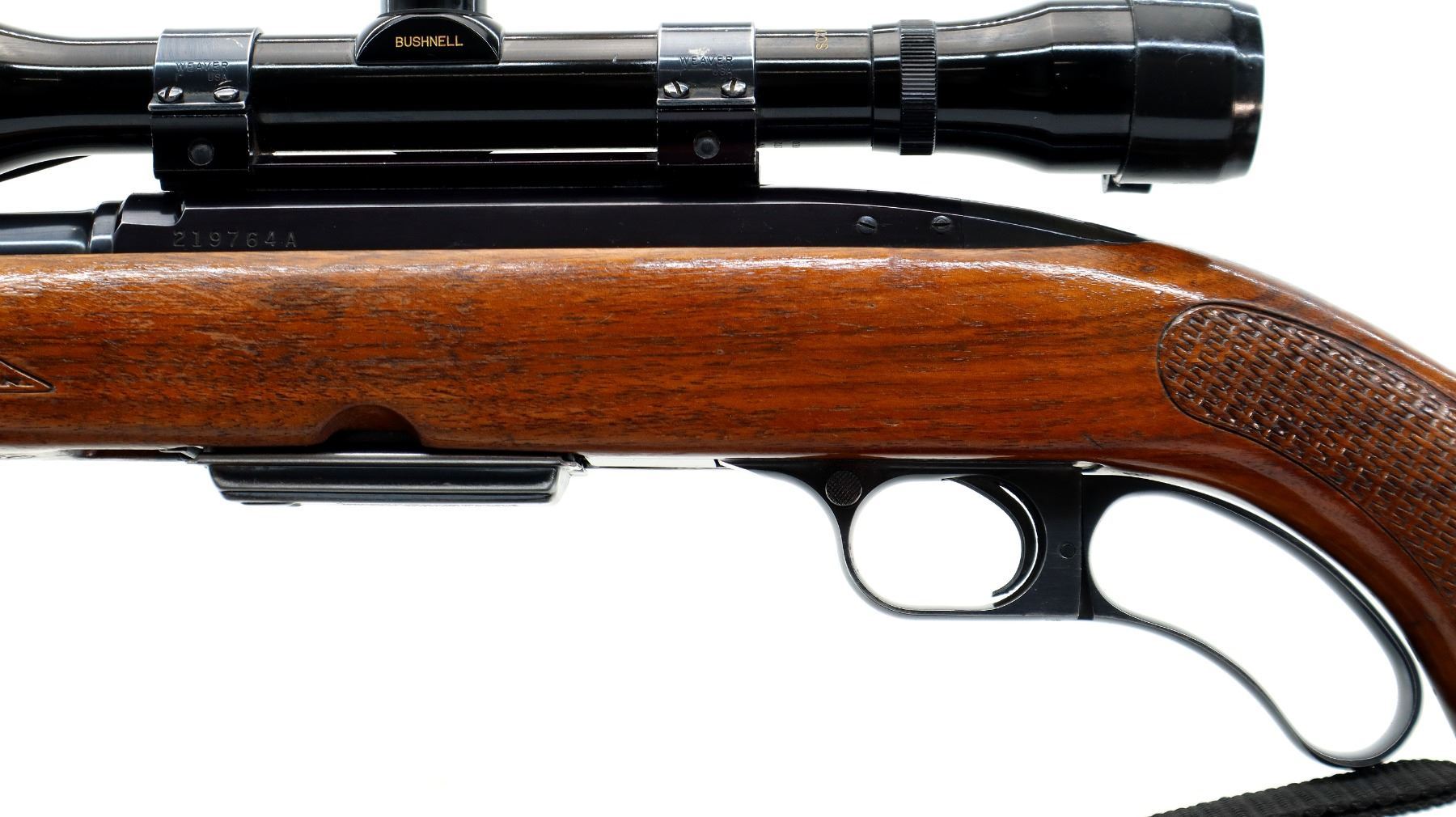 Main Description: Manufactured 19668. Blade front sight with hood and ramp, adjustable folding u notched rear sight, blued finish, receiver drilled and tapped with Bushnell Scopechief VI 4x32 scope installed, clear optics with duplex crosshair. One piece wood stock, Basketweave checkered forearm and pistol grip, checkered black polymer butt plate, steel grip cap, sling swivels, black nylon sling.