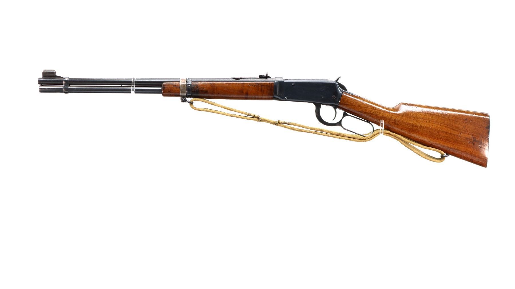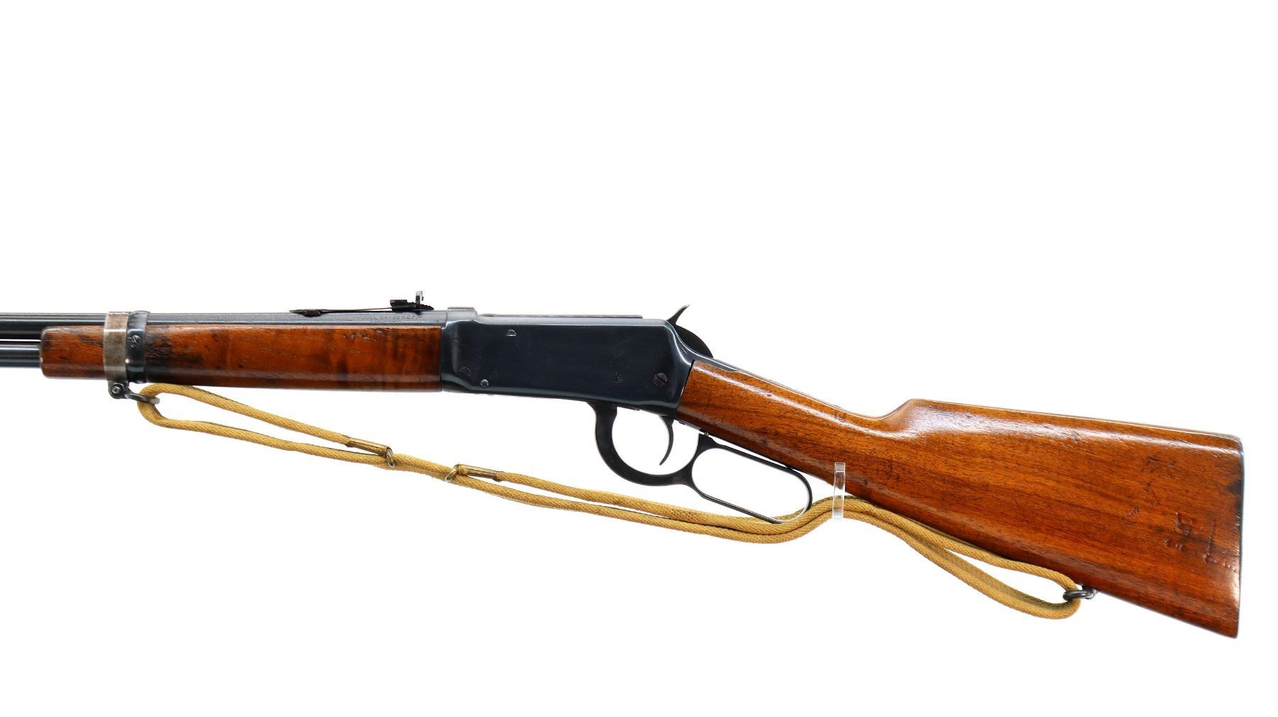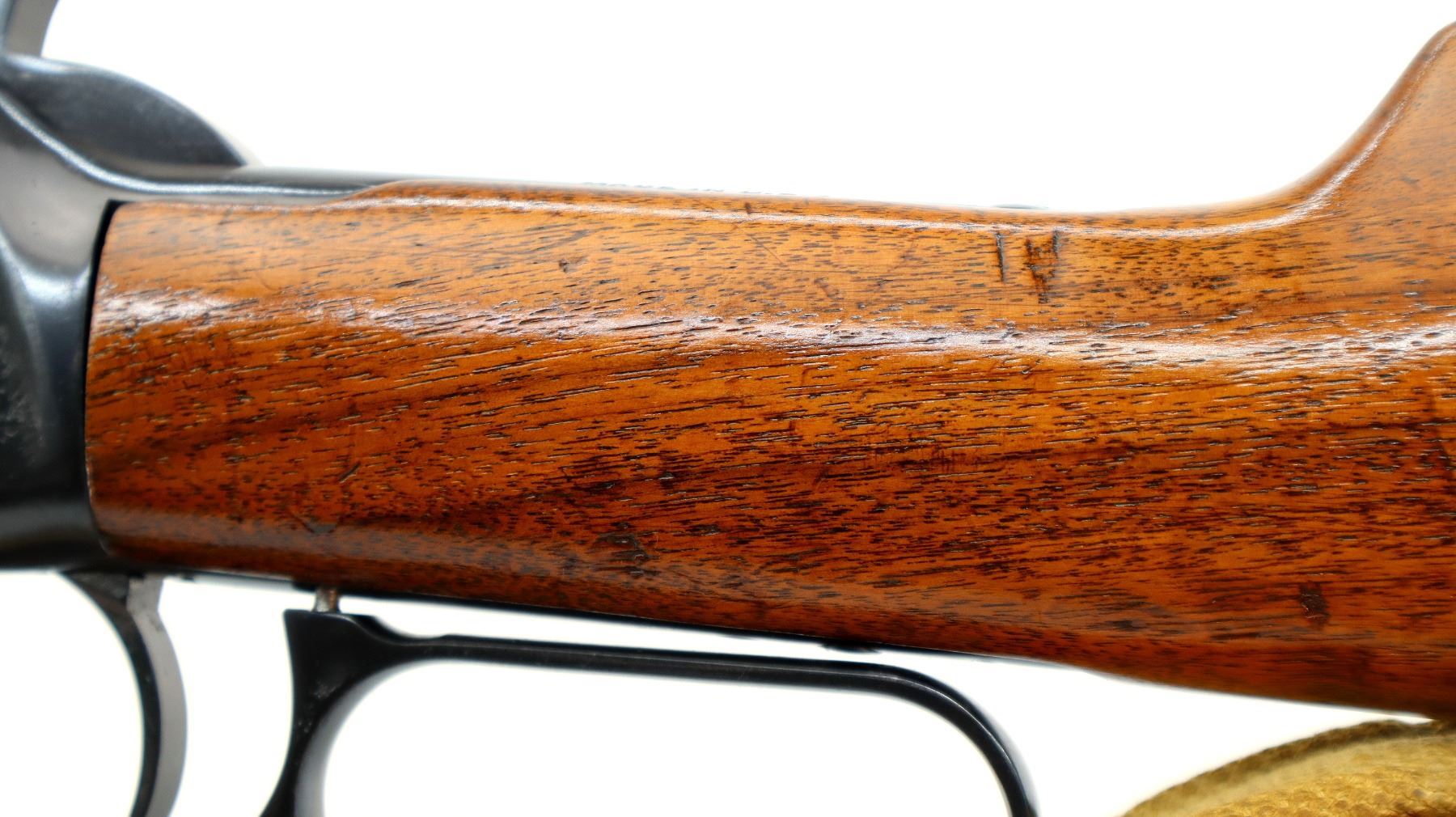 Main Description: Manufactured 1942. This rifle has a C-Broad arrow on the stock and receiver with stamped steel front swivel band, issued to PCMR (Pacific Coast Militia Rangers). Blade front sight with hood and ramp, adjustable u notched rear sight, metal has been polished and reblued with pitting underneath, checkered spur hammer. Two piece refinished wood stocks, forearm is cracked, straight grip, grooved steel shotgun butt plate, sling swivels with P37 canvas web sling. Full length magtube with small dent