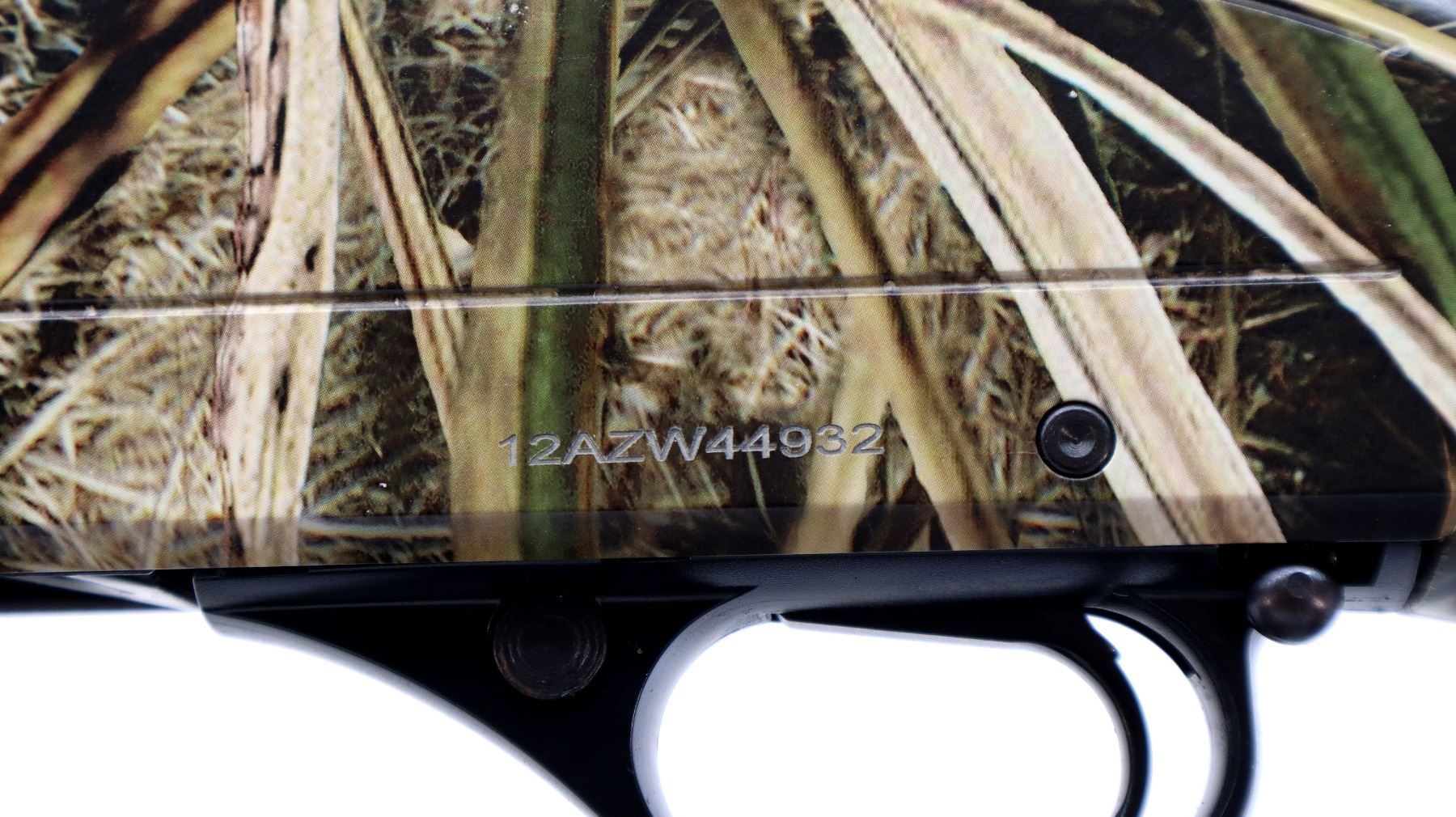 Main Description: Red fiber optic front bead, Shadow grass camo overall, vent rib, alloy receiver. Two piece synthetic stocks, textured forearm and pistol grip panels, black rubber recoil pad, grip cap, swivel studs.