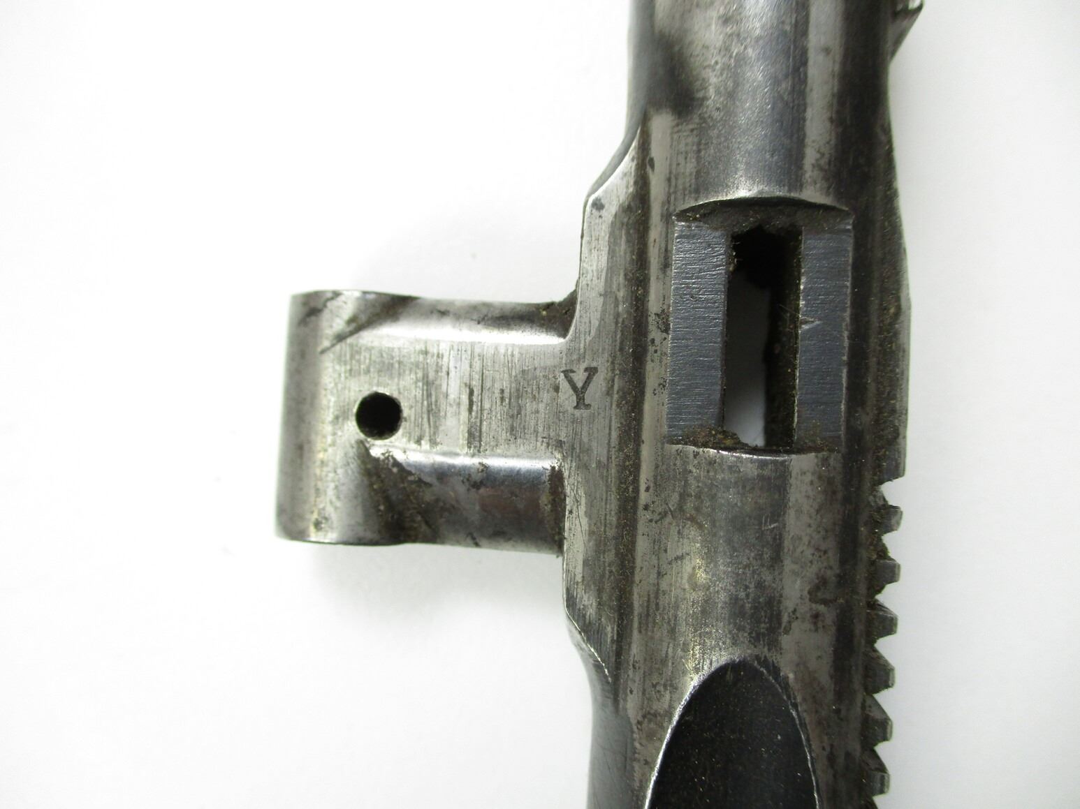 WWI BRITISH LEWIS MG CARRIER , INCLUDES PISTON, (NO FIRING PIN), MARKED WITH A LETTER "Y" & BROAD ARROW, SOME RUST AND PITTING
