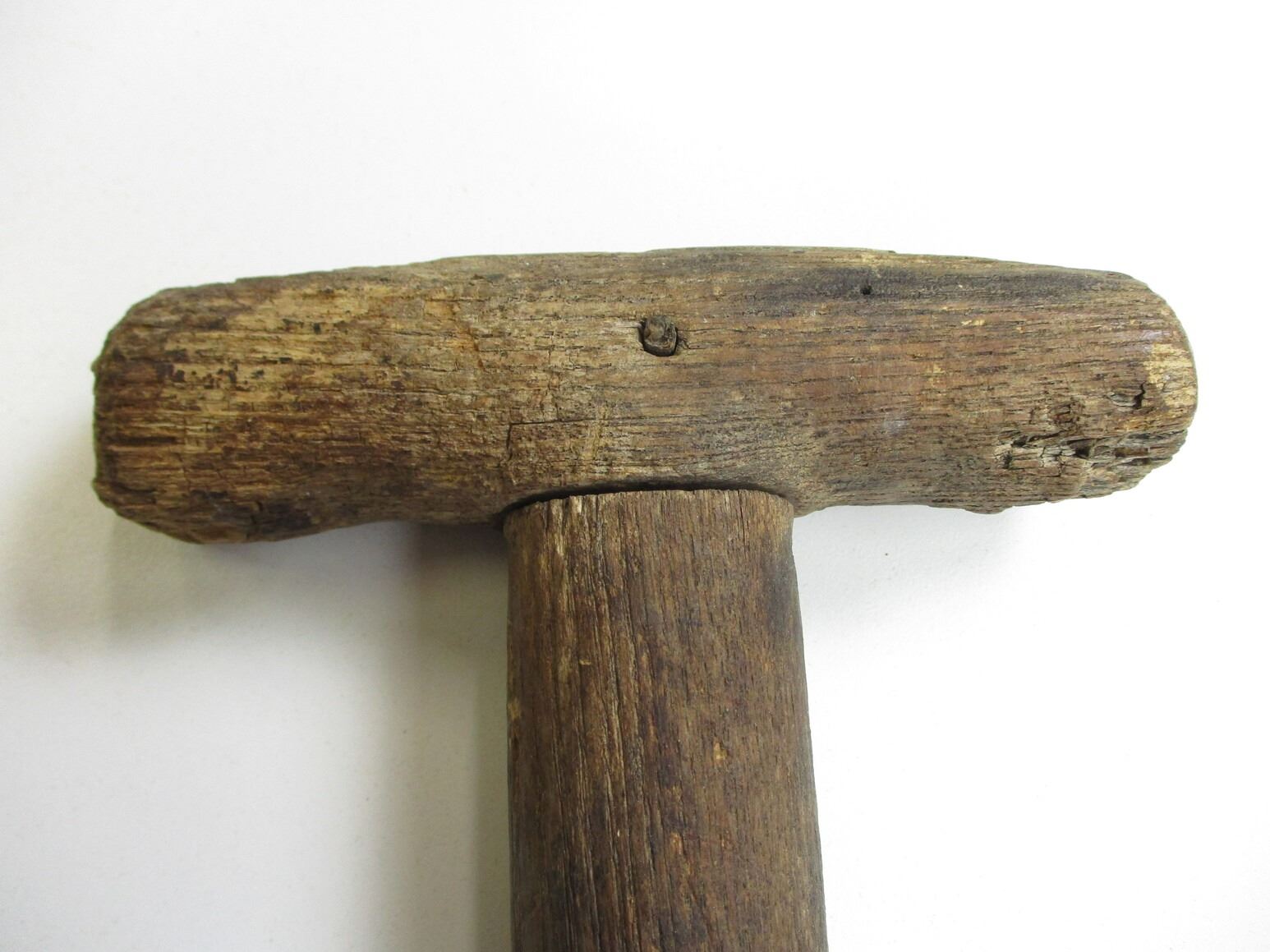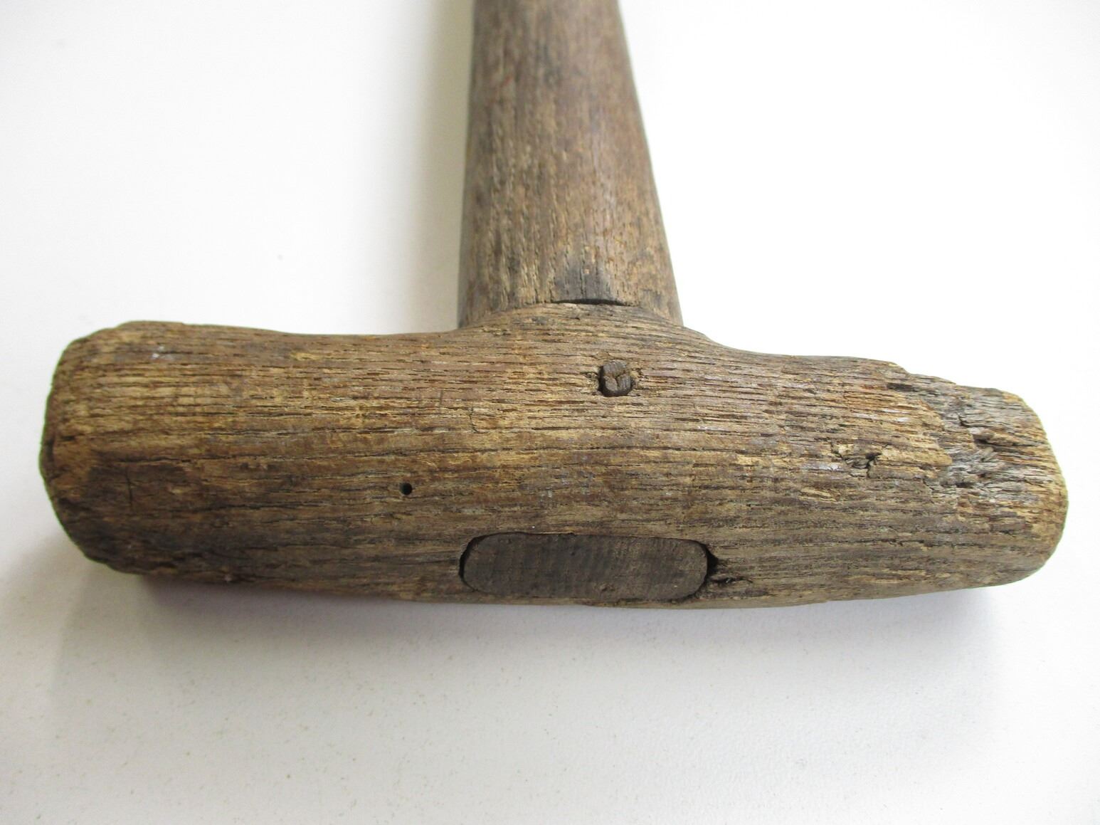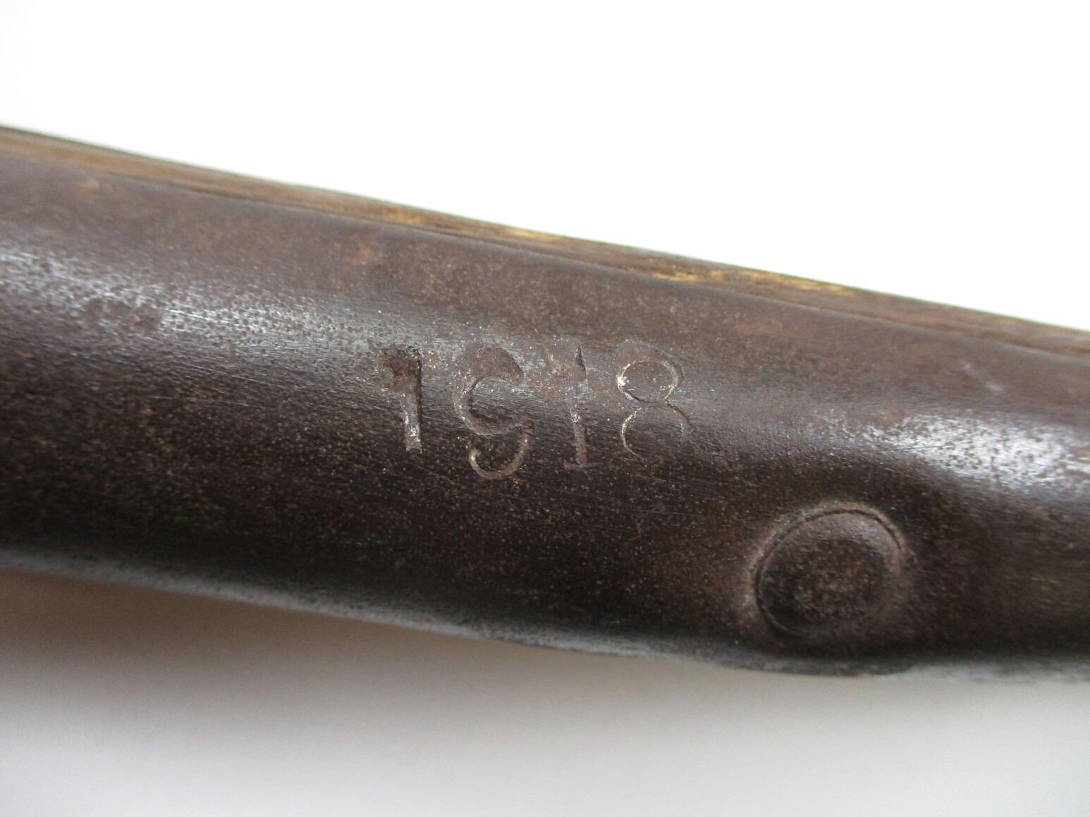 WWI BRITISH MILITARY SHOVEL , (1) METAL SHOVEL HEAD WITH WOODEN T-HANDLE, SHOVEL HEAD MARKED: "1918" & "J.YATES & CO., BIRMINGHAM" WITH OTHER WORN MARKINGS, WOODEN HANDLE HAS CRACK IN IT, CONSIGNOR HAS PROVIDED COPY OF ENGINEERING DRAWINGS, APPROX. 37" H X 8" W. SEE PHOTOS.