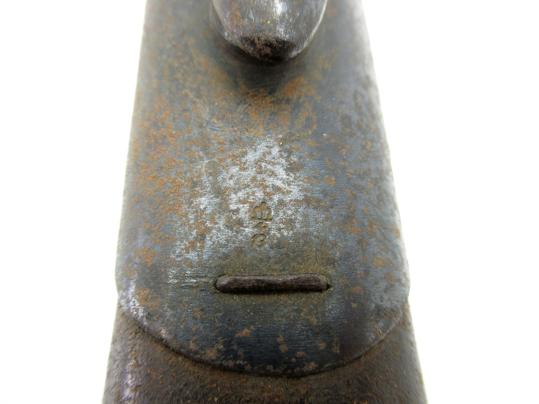 (1) FITS .30-06 M1917 RIFLES & 12 GAUGE COMBAT SHOTGUNS, RICASSO MARKED: "1917" OVER "REMINGTON" IN A CIRCLE, OTHER-SIDE MARKED: EAGLE HEAD & ORDNANCE BOMB OVER "2?, U.S.", 2-PIECE GROOVED WOOD GRIP, METAL POMMEL, NO VISIBLE MARKINGS, 2ND PATTERN LEATHER & METAL SCABBARD, MARKED: "H.G.R. 17", BROAD ARROW, CROWN OVER "1K" OVER "E" OVER " '17" & VARIOUS PROOF MARKS ON METAL ENDS, BLADE APPROX. 17" & OAL APPROX. 21 7/8". SEE PHOTOS.