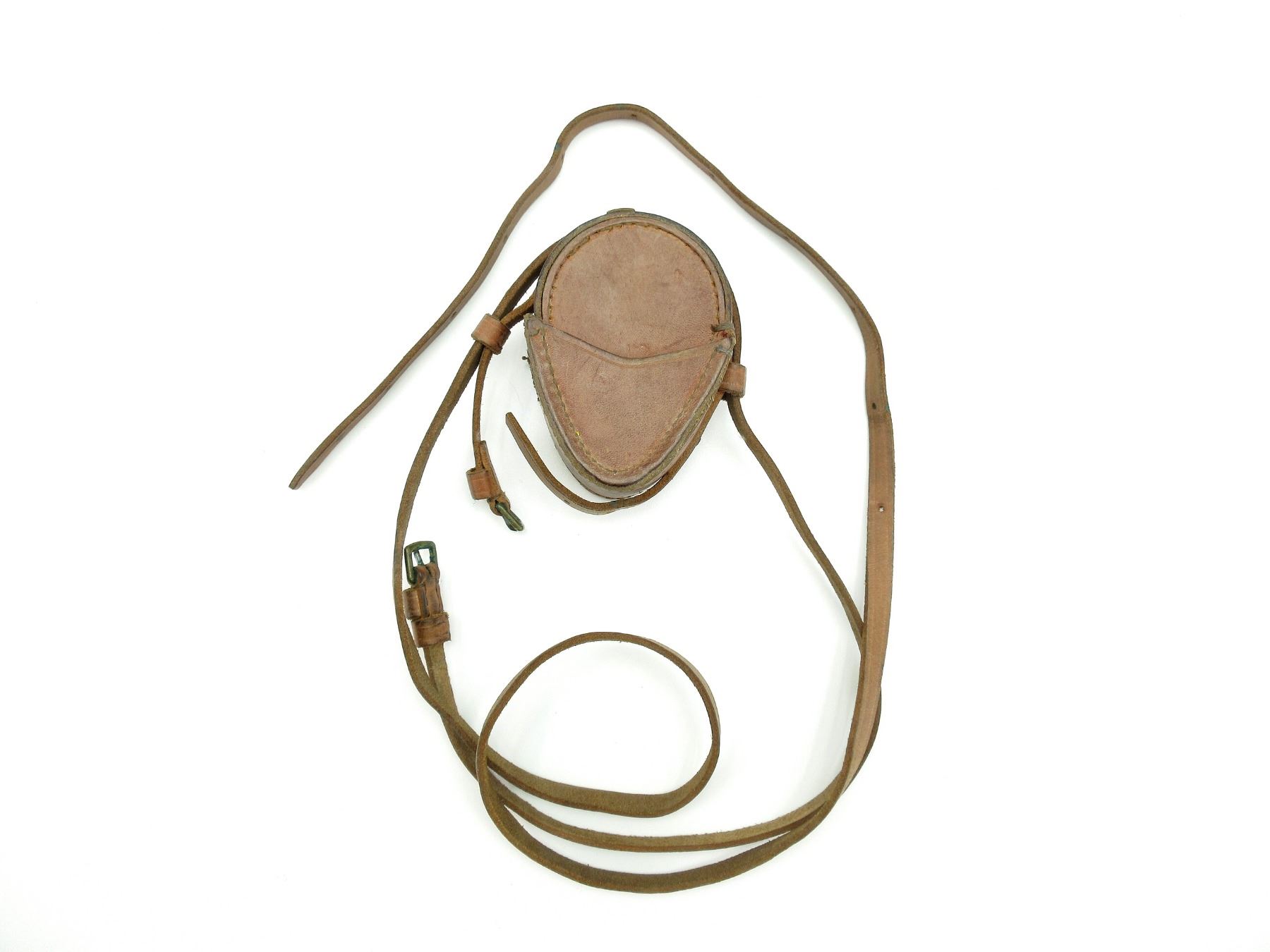 (1) BROWN LEATHER COMPASS POUCH WITH STRAP, MARKED: "SUTTON-HORSLEY CO. LTD., 1941", C-BROAD ARROW ON BACK OF POUCH & ON STRAP (EARLY VERSION). SEE PHOTOS.
