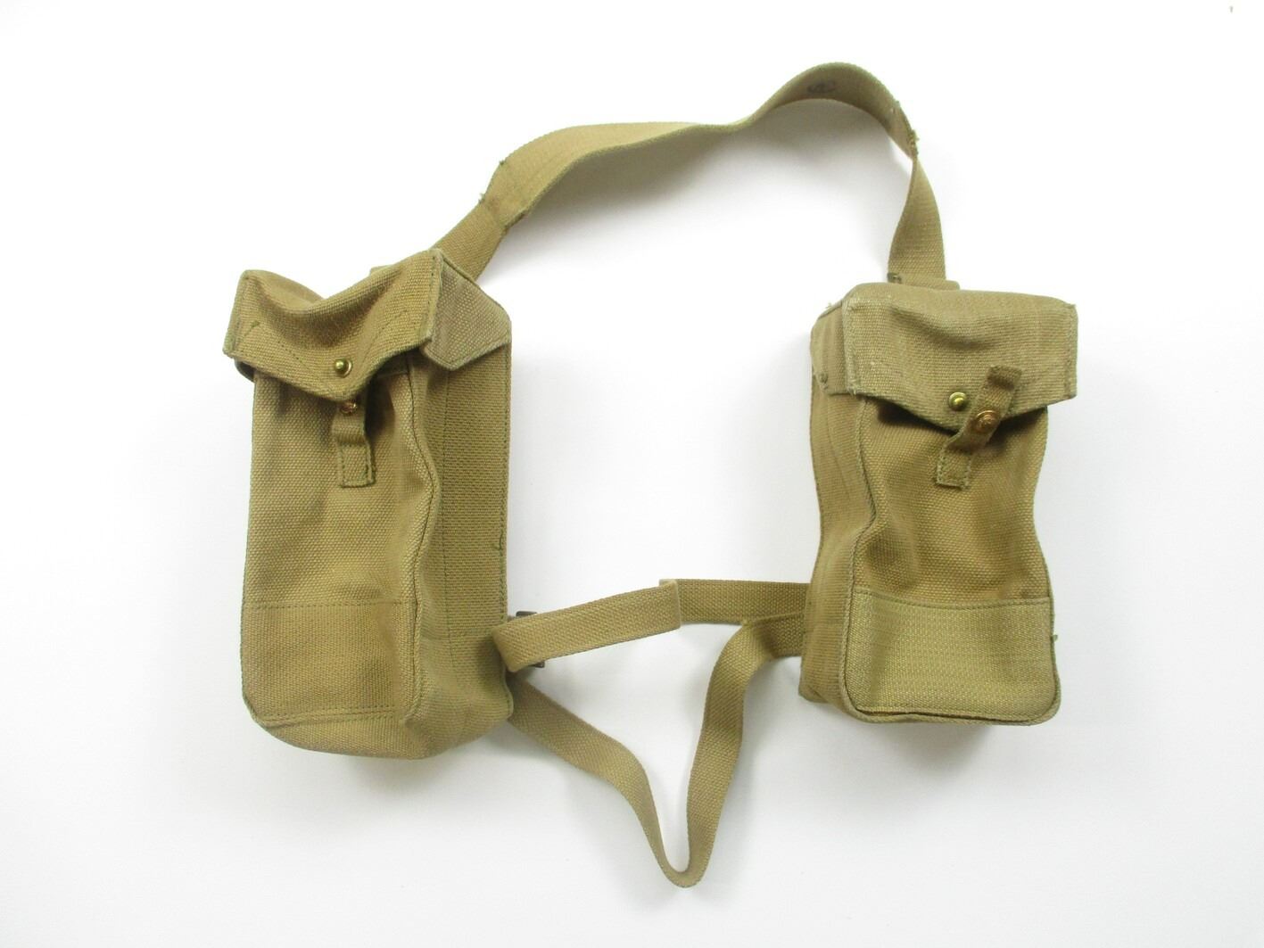 WWII CANADIAN P37 BREN LMG AMMO POUCH LOT, LOT INCLUDES; (2) AMMO POUCHES WITH BELT LOOP & METAL FITTINGS, ONE MARKED: "FRONT", "Z.L.&T.LTD. 1940" & C-BROAD ARROW, ONE MARKED: "BACK", "Z.L.&T.LTD. 1940" & C-BROAD ARROW, SHOULDER STRAP MARKED: ""Z.L.&T.LTD. 1941" & C-BROAD ARROW. SEE PHOTOS.