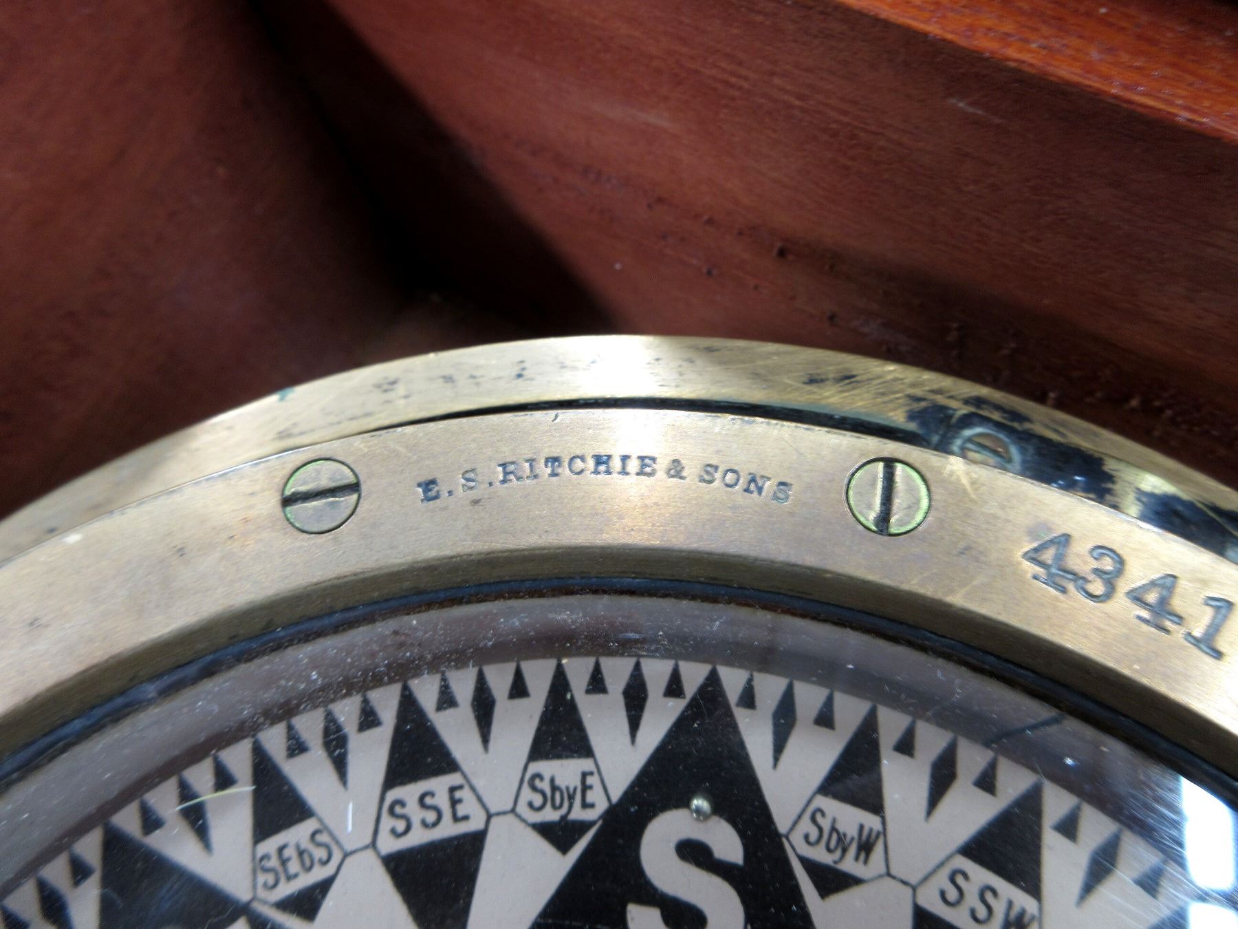 LOT INCLUDES; (1) RITCHIE BOSTON BRASS COMPASS IN WOOD MAHOGANY CASE, COMPASS MARKED: "E.S. RITCHIE & SONS, 43417, BOSTON.", "RITCHIE BOSTON U.S.A." & "RITCHIE BOSTON", MATCHING BRASS FRAME THAT HOLDS COMPASS IN CASE MARKED: "43417", UN-TESTED, CONSIGNOR STATES: "FROM WW2, FULLY FUNCTIONAL & ACCURATE", COMPASS APPROX. 8 3/8" DIA. (NOT INCLUDING BRASS FRAME), NO VISIBLE MARKINGS ON WOODEN CASE, GLASS TOP ON CASE (SMALL CHIPS ALONG EDGE OF GLASS), ALL GLASS INTACT, CASE APPROX. 13" X 12.5" X 6.25" & (1) BRASS PERKO SHIPS BINNACLE, CONSIGNOR STATES: "BRASS BINNACLE ORIGINALLY HAD A LIGHT IN THE BASE TO TRANSILLUMINATE A COMPASS, LACKING TOP END COMPASS & BINNACLE", STAND MARKED: "REGISTERED TRADE MARK, HUSUN, HENRY HUGHES & SON LTD. LONDON" & APPROX. 12.75" X 13.5" X 35.5". SEE PHOTOS. *NO GUARANTEE ON GLASS FOR SHIPPING* *ADDITIONAL SHIPPING / FREIGHT CHARGES WILL APPLY*