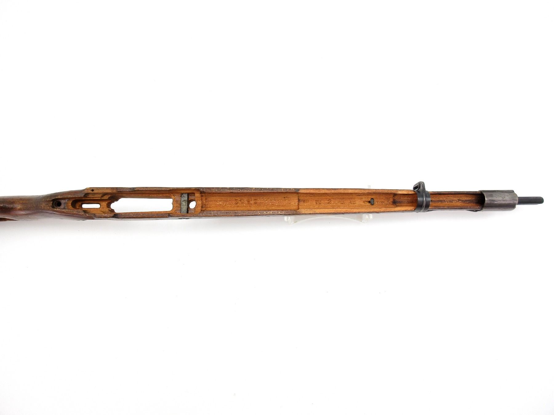 (1) FITS 8MM MAUSER RIFLES, WOOD CONSTRUCTION WITH METAL FITTINGS, VARIOUS PROOF MARKS, CHIPS THROUGHOUT, OAL APPROX. 39.5". MAY REQUIRE FITTING. SEE PHOTOS.
