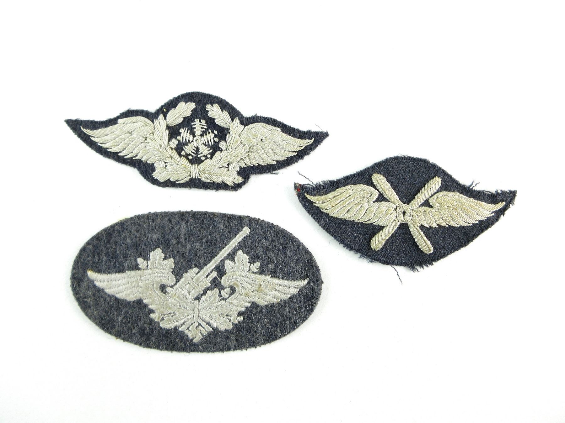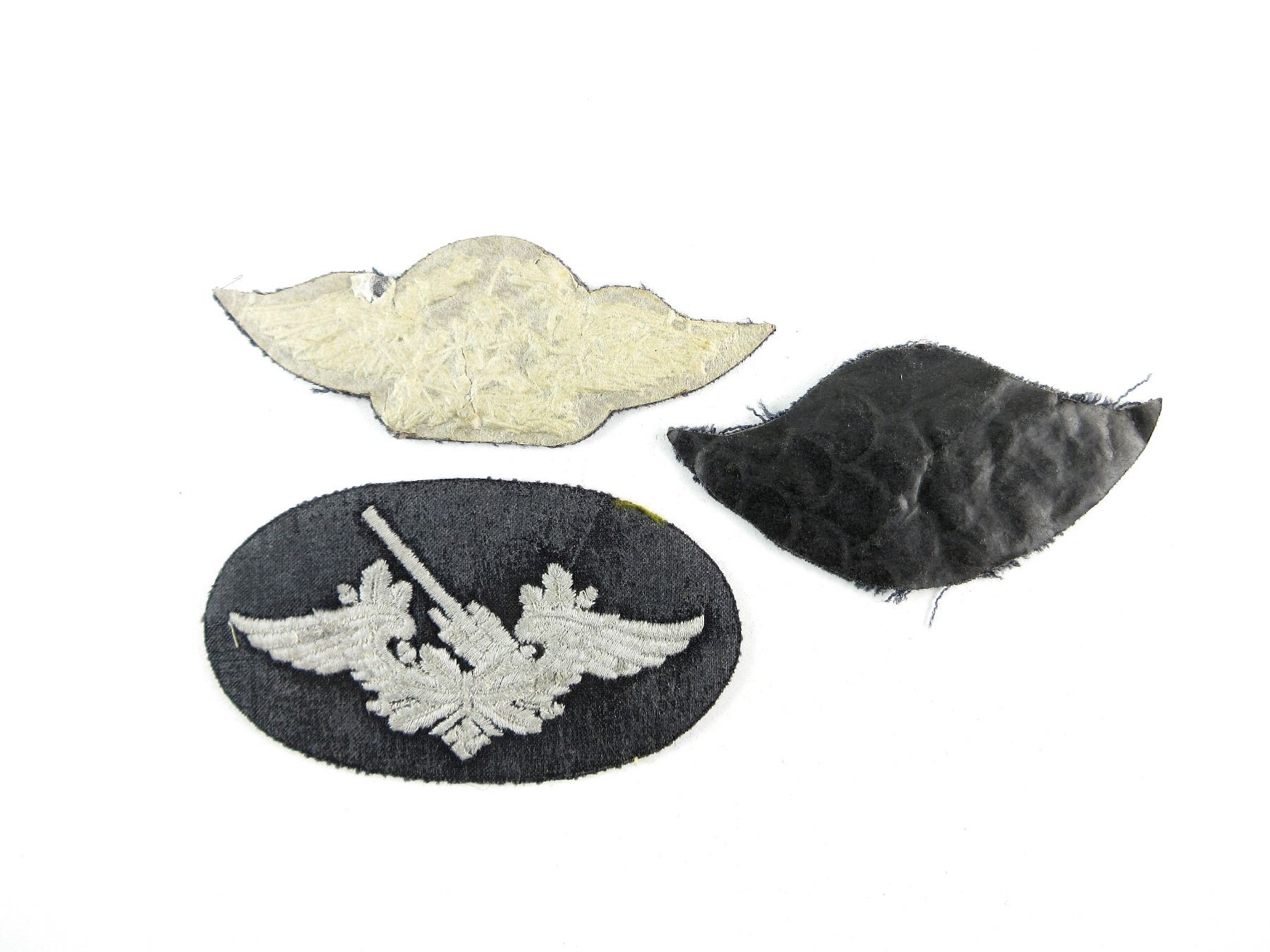 LOT INCLUDES; (1) FLIGHT PERSONNEL BADGE, (1) FLAK BADGE, (1) TECHNICAL PERSONNEL BADGE, ALL CLOTH / WOOL WITH WHITE THREADS, ALL DO NOT GLOW UNDER BLACK LIGHT. SEE PHOTOS.