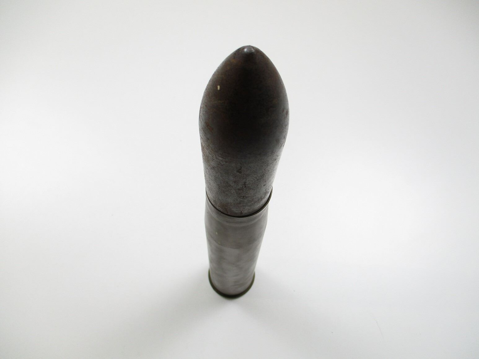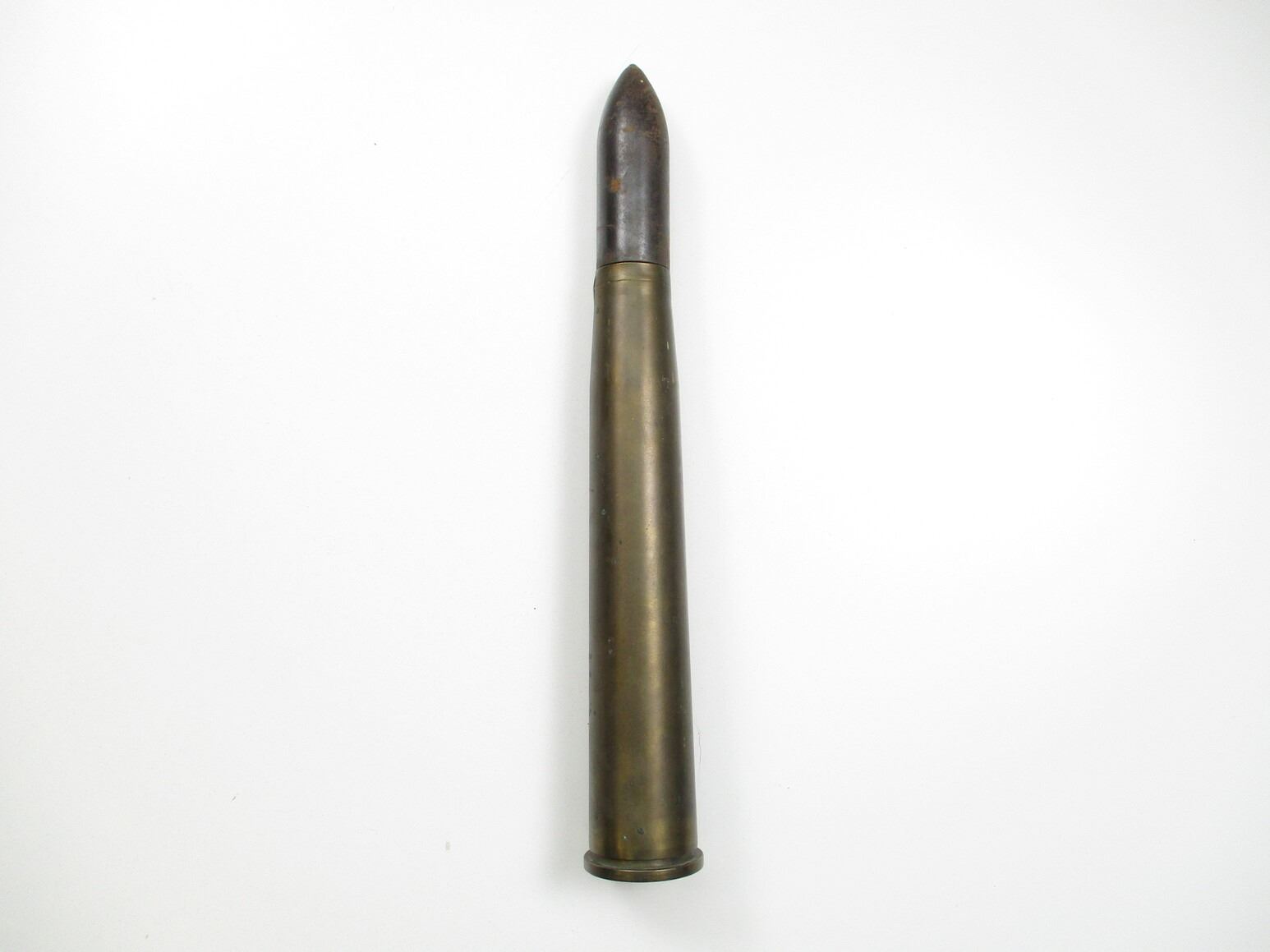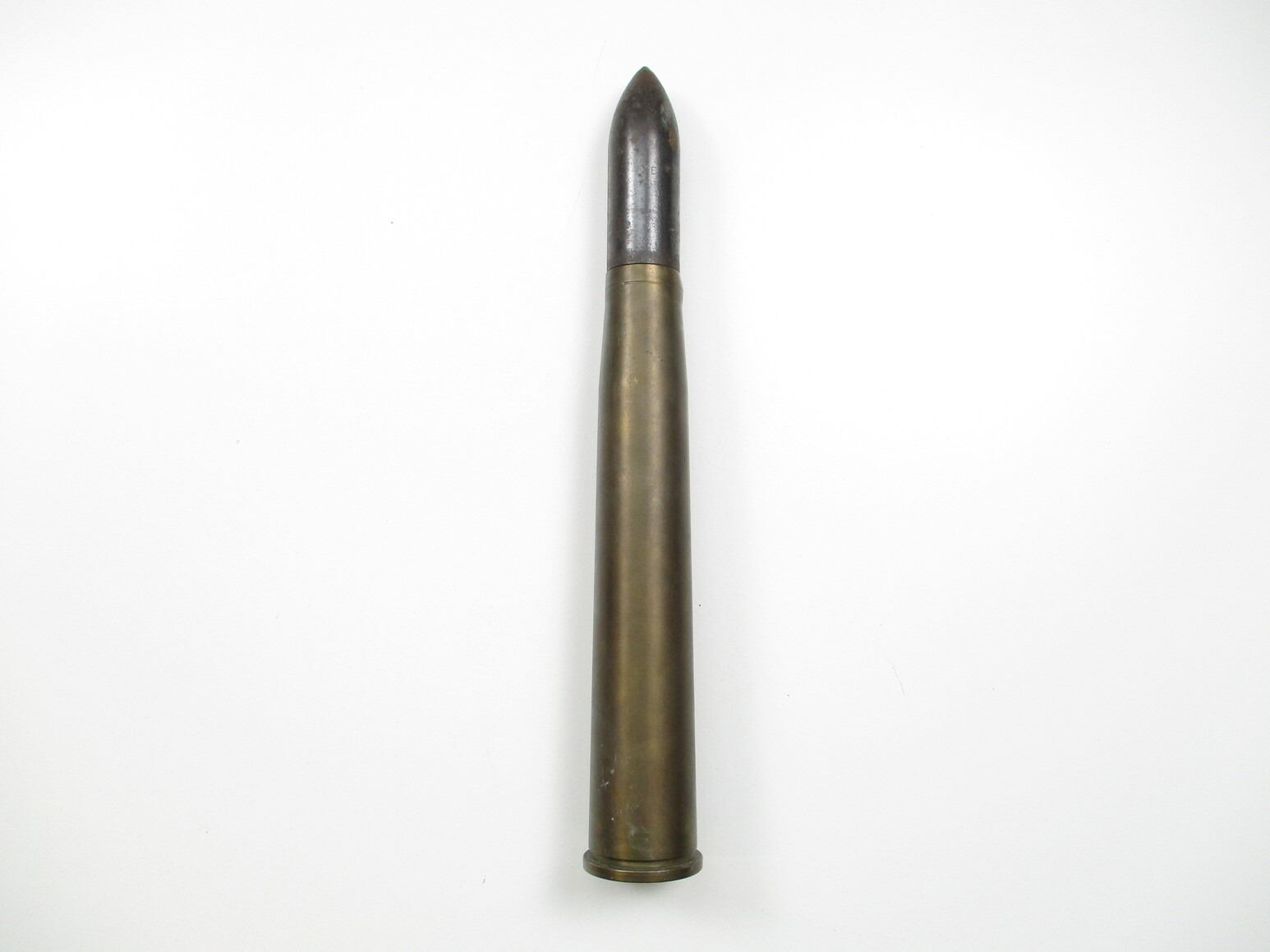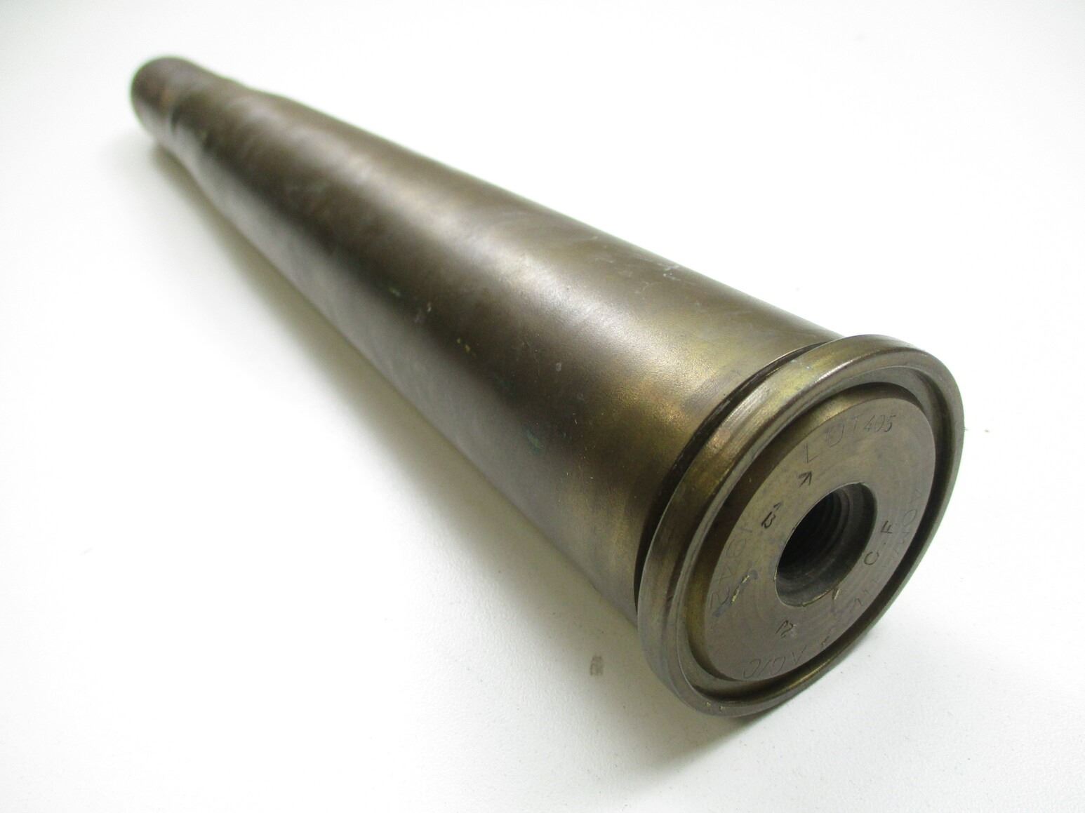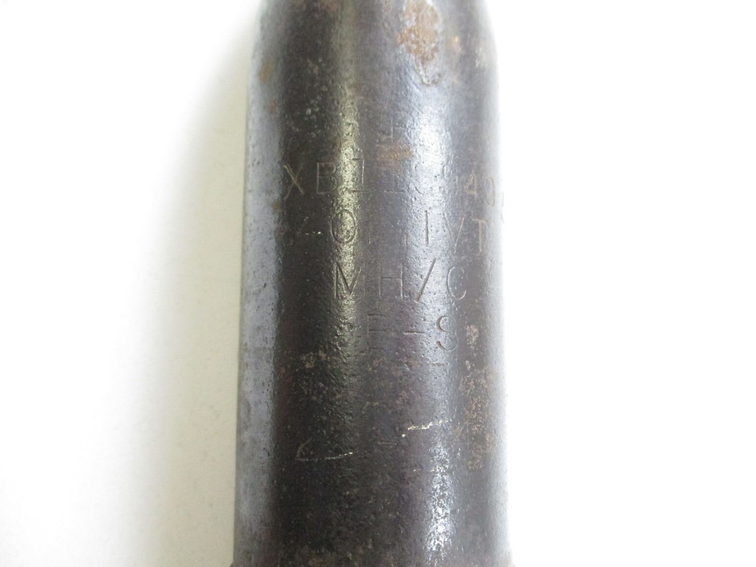 WWII / POSTWAR BRITISH / CANADIAN INERT 40MM ROUND, (1) STEEL PROJECTILE MARKED: "MH/C", "1949" & C-BROAD ARROW, BRASS CASE, NO FUZE, MARKED: "1942", "LOT 405", "AG/C", ETC. & BROAD ARROW, APPROX. DIA. 2.5" & OAL APPROX. 17"., THESE CAN ONLY BE SHIPPED BY CORPORATE UPS COVERED AREAS. PLEASE GO TO LOT 0 IN THE AMMUNITION SESSION, TO SEE IF YOUR POSTAL CODE IS A VALID AREA. THESE CAN NOT BE SHIPPED TO THE USA, OR INTERNATIONALLY. NO REFUNDS WILL BE ISSUED, OR BIDS RETRACTED.