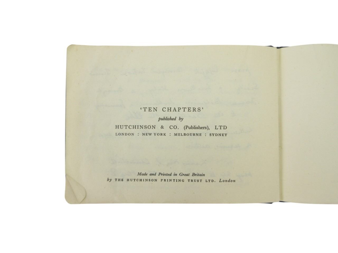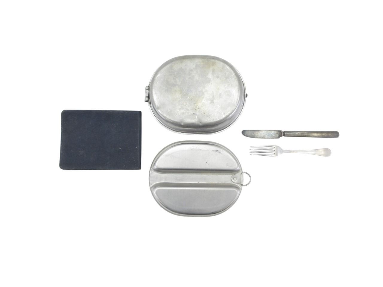 WWII U.S. / BRITISH MILITARY ACCESSORIES LOT. LOT INCLUDES; (1) "TEN CHAPTERS 1942 TO 1945", BOOK BY B.L. MONTGOMERY, PUBLISHED BY HUTCHINSON & CO. LTD, RECORD OF B.L. MONTGOMERY'S TIME IN ARMY FROM AUGUST 1942 TO MAY 1945, (1) WWII ALUMINUM MES TIN, TWO SECTION PLATE & PAN, MARKED: "U.S., LEYSE, 1944", (1) ALUMINUM FORK MARKED: "U.S.N." & (1) ALUMINUM KNIFE MARKED: "U.S.N. SEE PHOTOS.