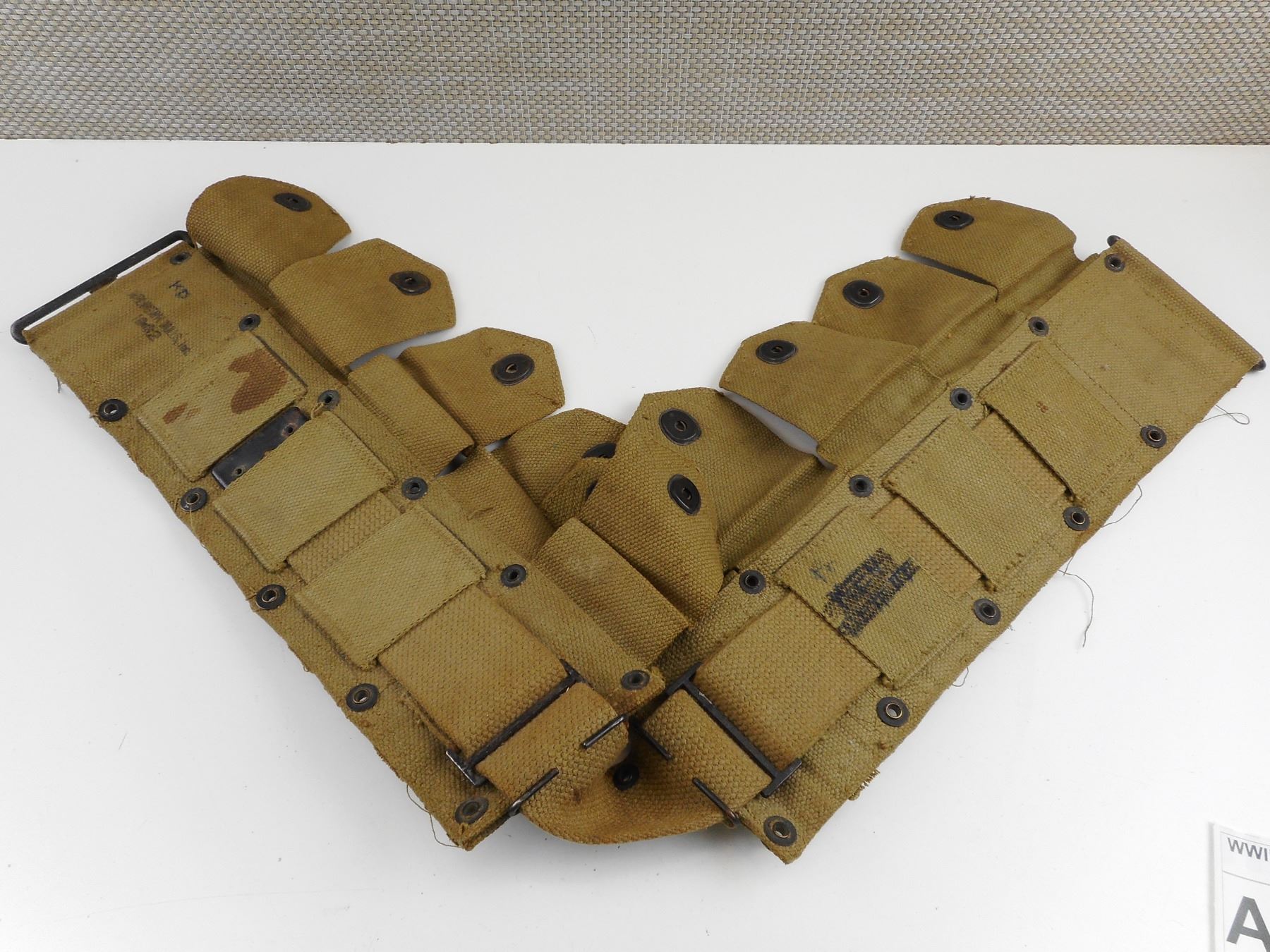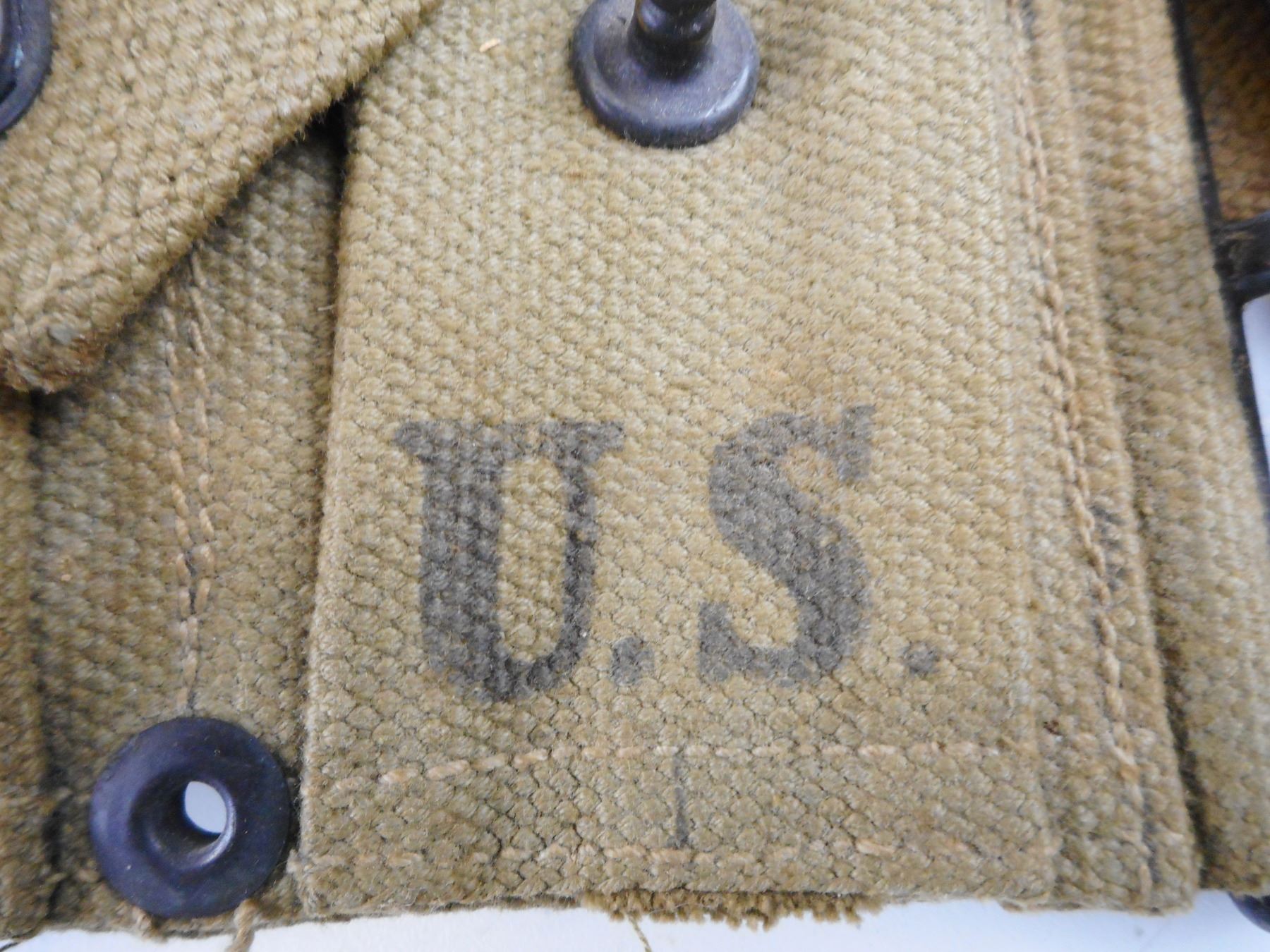 MARKED U.S, _ MILLS, INC MFG. DATED 1942. FITS 2, 1903 STRIPPER CLIPS PER POUCH WITH SEPERATING STRAP.