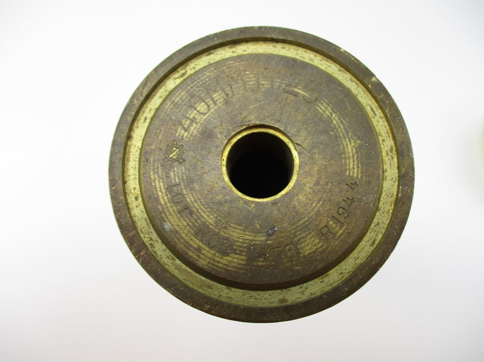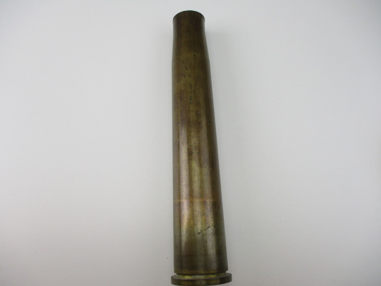 WWII US 40MM BOFORS CASING , BRASS, NO PRIMER, MARKED 40MM, M25, RCB-1-78, R1944. APPROXIMATELY 12" OVERALL LENGTH.