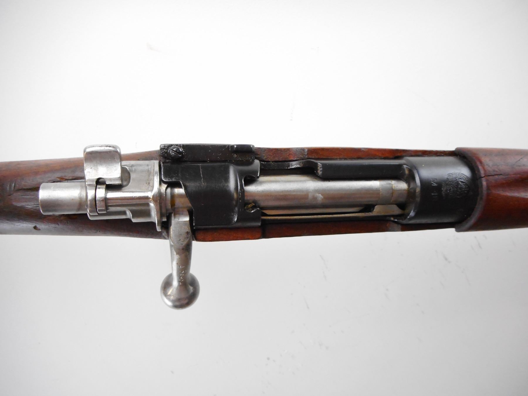 CONDITION: 7/10 , YUGOSLAV MAUSER , MODEL: M48 , CALIBER: 8MM , BORE IS FAIR, WORN, DARK. SERIAL NUMBERS MISMATCHED. BARLEY CORN FRONT SIGHT WITH RAMP, ADJUSTABLE U NOTCH REAR SIGHT, POLISHED BOLT. TWO PIECE FULL MILITARY STOCK, SMOOTH STEEL BUTT PLATE, SLING SWIVELS, NO CLEANING ROD, BAYONET LUG. METAL FINISH SHOWS SLIGHT HANDLING MARKS, RETAINS PACKING GREASE, HAND GUARD CRACKED. STOCKS SHOW DINGS, CHIPS AND WEAR , ACTION: BOLT ACTION RIFLE , BARREL LENGTH: 23.25" , SERIAL # A59464 , CLASS: CANADIAN NON RESTRICTED CLASS