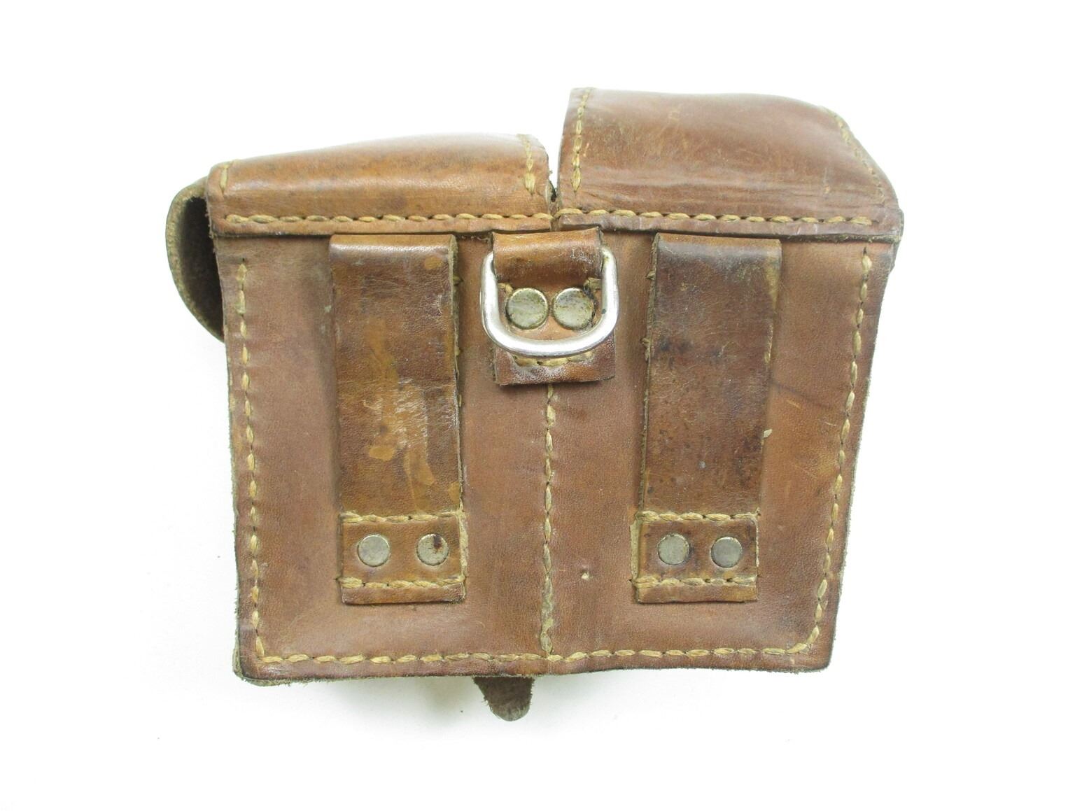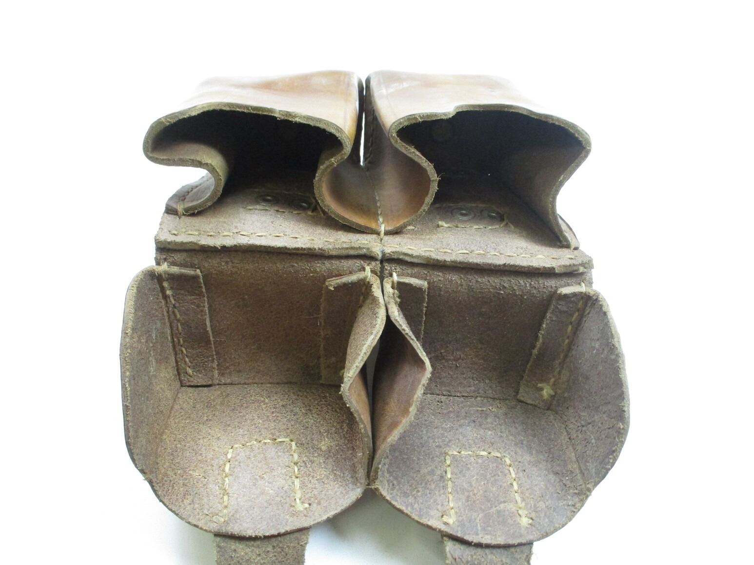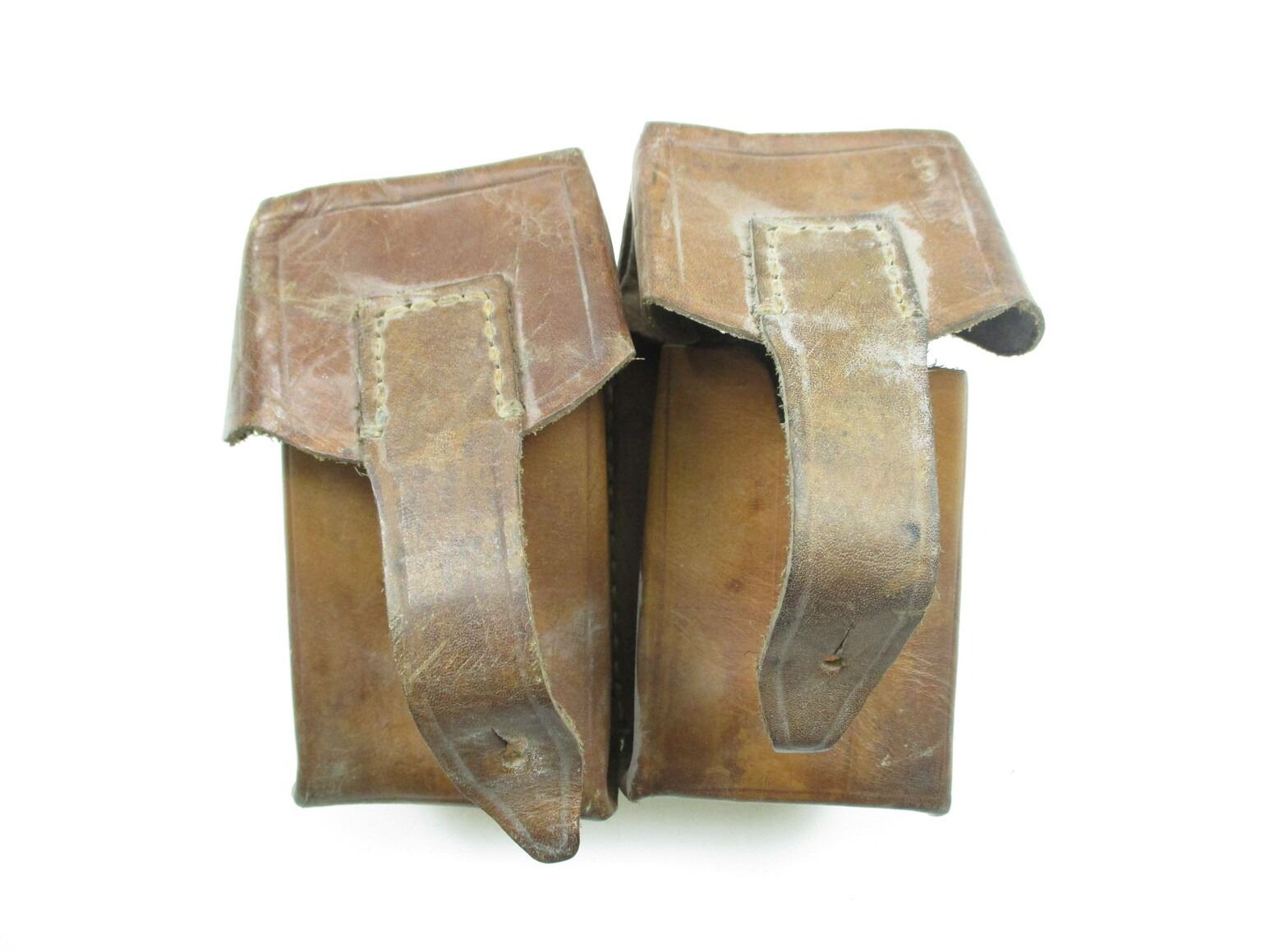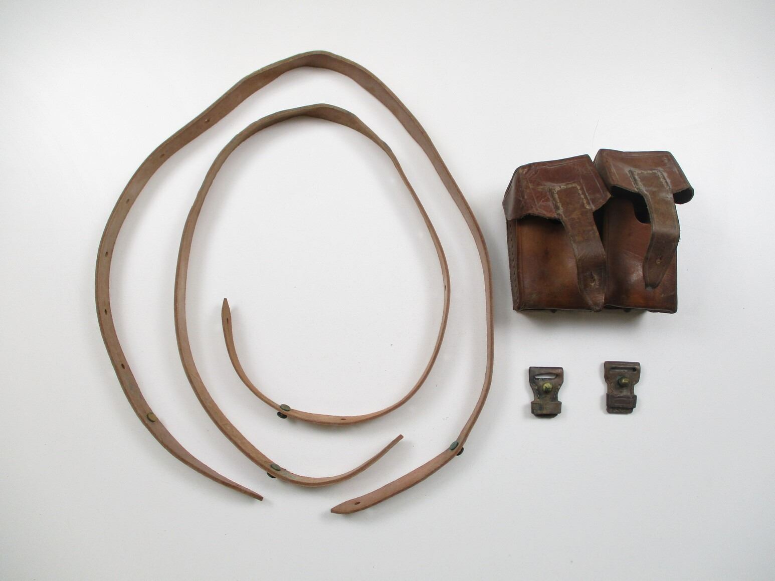 YUGOSLAVIAN M48 MAUSER ACCESSORIES LOT, LOT INCLUDES; (2) BROWN LEATHER SLINGS, NO VISIBLE MARKINGS, OAL APPROX. 46" & (1) DOUBLE-AMMO POUCH, NO VISIBLE MARKINGS. SEE PHOTOS.