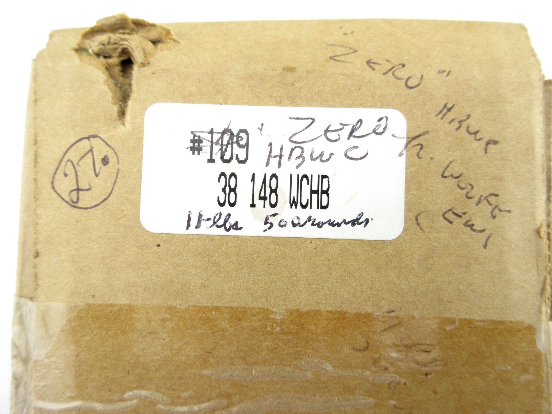 LOT INCLUDES; APPROX. (500) BULLETS, APPROX. DIA .357", CONSIGNOR STATES; "148 GRNS WCHB", UNOPENED.