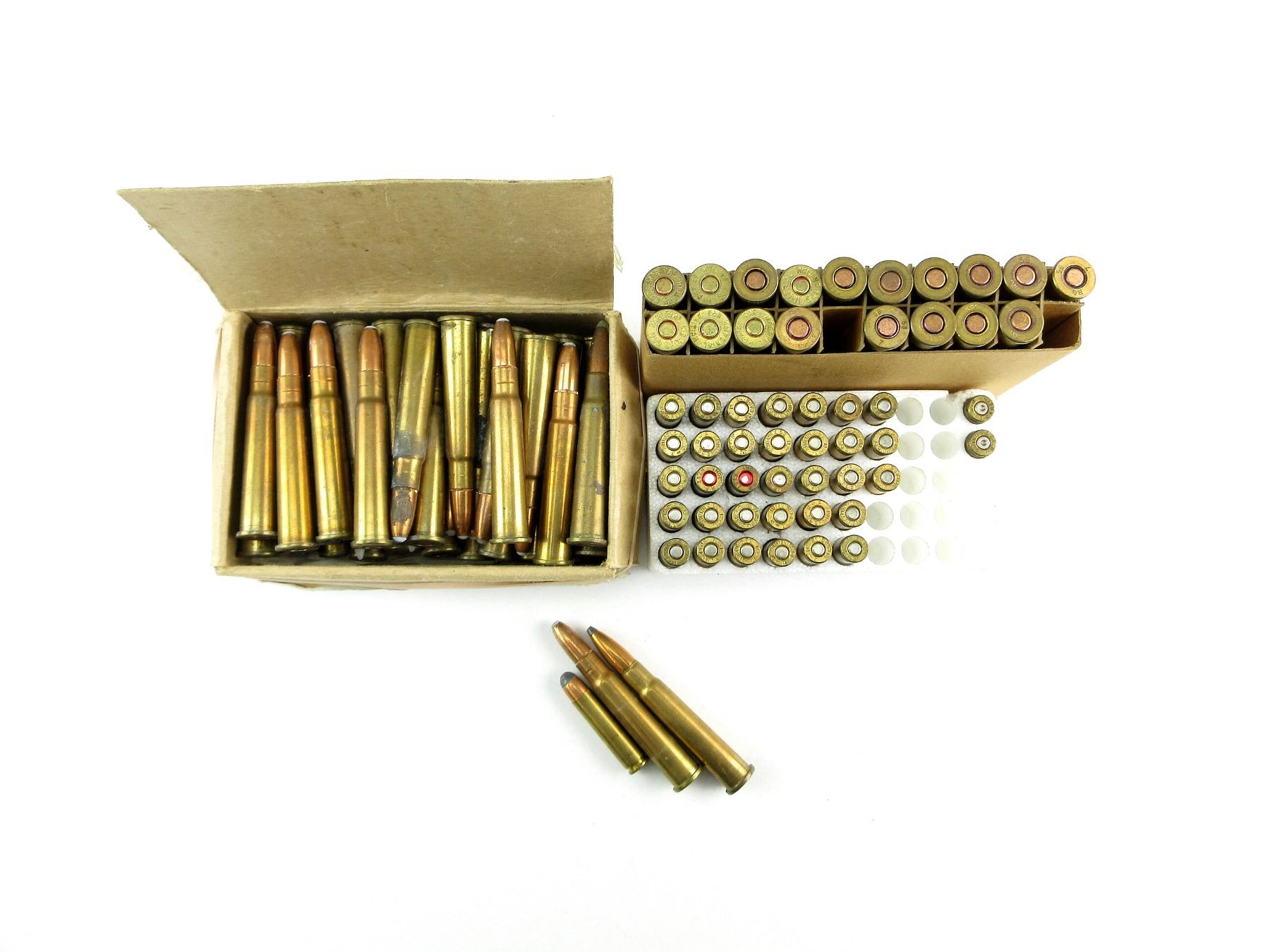 LOT INCLUDES; APPROX. (101) RNDS, (2) NON-PRIMED BRASS CASES, SOME CORROSION, MAY CONTAIN SOME FACTORY & MILITARY RNDS.